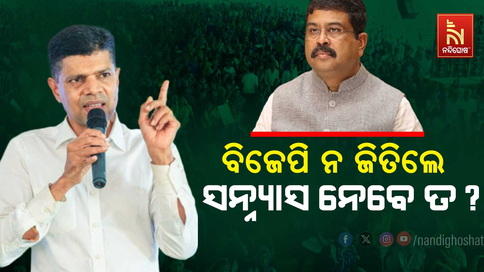 ଅପରପକ୍ଷେ ଧର୍ମେନ୍ଦ୍ର ପ୍ରଧାନଙ୍କୁ କାର୍ତ୍ତିକ ପାଣ୍ଡିଆନଙ୍କ ଖୋଲା ଚ୍ୟାଲେଞ୍ଜ। ଜୁନ ୯ ତାରିଖରେ ତିନି ଚତୁର୍ଥାଂଶରୁ ଅଧିକ ଆସନରୁ ଜିତି ନବୀନ ପଟ୍ଟନାୟକ ଷଷ୍ଠ ଥର ପାଇଁ ମୁଖ୍ୟମନ୍ତ୍ରୀ ଭାବେ ଶପଥ ନେବେ। ଏହା ନହେଲେ ସେ ରାଜନୀତିରୁ ସନ୍ନ୍ଯାସ ନେବେ। ଯଦି ବିଜେପି ଓଡିଶାରେ କ୍ଷମତାକୁ ନଆସେ ତେବେ ଧର୍ମେନ୍ଦ୍ର ପ୍ରଧାନ ରାଜନୀତିରୁ ସନ୍ନ୍ଯାସ ନେବାକୁ ଘୋଷଣା କରିବେ କି ? ବ୍ରଜରାଜନଗରରୁ କାର୍ତ୍ତିକ ପାଣ୍ଡିଆନ ଧର୍ମେନ୍ଦ୍ରଙ୍କୁ ଏହି ଆହ୍ବାନ ଦେଇଛନ୍ତି ।
