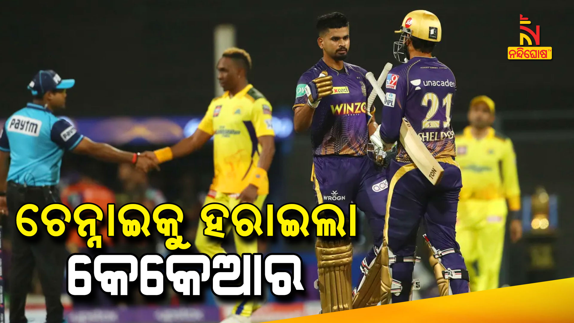 ମୁମ୍ବାଇ: ଆଇପିଏଲର ଉଦଘାଟନୀ ମ୍ୟାଚରେ ଚେନ୍ନାଇକୁ ହରାଇ ବିଜୟ ଅଭିଯାନ ଆରମ୍ଭ କରିଛି କେକେରା । ଡିଫେଣ୍ଡିଂ ଚମ୍ପିଆନ ଚେନ୍ନାଇକୁ ୬ ଓ୍ବିକେଟରେ ହରାଇଛି କୋଲକାତା । ମହେନ୍ଦ୍ର ସିଂ ଧୋନୀଙ୍କ ଲଢୁଆ ଅର୍ଦ୍ଧଶତକ ବୃଥା ଯାଇଥିବା ବେଳେ କେକେଆର ପକ୍ଷରୁ ଆଜିଙ୍କ ରାହାଣେ ସର୍ବାଧିକ ୪୪ ରନ୍ କରି କୋଲକତା ବିଜୟରେ ନାୟକ ସାଜିଛନ୍ତି । ପ୍ରଥମ ବ୍ୟାଟିଂ କରି ଚେନ୍ନାଇ କରିଥିଲା ୧୩୧ ରନ୍ କରିଥିଲା । ୧୩୨ ରନର ବିଜୟ ଲକ୍ଷ୍ୟକୁ କେକେରା ୧୮.୩ ଓଭରରେ ବିଜୟ ହାସଲ କରି ନେଇଥିଲା ।