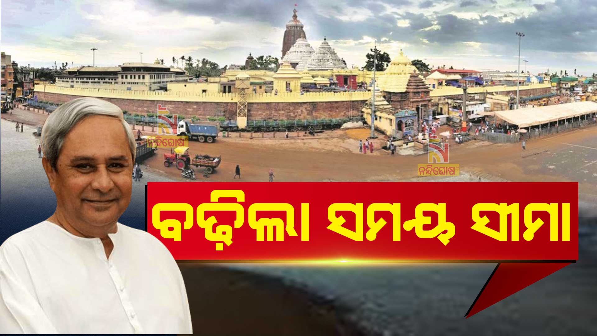 ପୁରୀ: ଶ୍ରୀମନ୍ଦିରର ସୁରକ୍ଷା ପାଇଁ ସ୍ୱେଚ୍ଛାକୃତ ଜମି ପ୍ରଦାନ ସମୟସୀମାକୁ ମୁଖ୍ୟମନ୍ତ୍ରୀ ନବୀନ ପଟ୍ଟନାୟକ ଆଉ ୭ଦିନ ବୃଦ୍ଧି କରିଛନ୍ତି । ଡିସେମ୍ବର ୨ରେ ଏହି ସମୟ ଶେଷ ହୋଇଥିଲା । ସ୍ଥାନୀୟ ଲୋକଙ୍କ ଆଗ୍ରହକୁ ଦେଖି ଏହି ସମୟ ସୀମା ଆଉ ୭ ଦିନ, ଅର୍ଥାତ ଡିସେମ୍ବର ୯ ତାରିଖ ପର୍ଯ୍ୟନ୍ତ ବୃଦ୍ଧି କରାଯାଇଛି ।