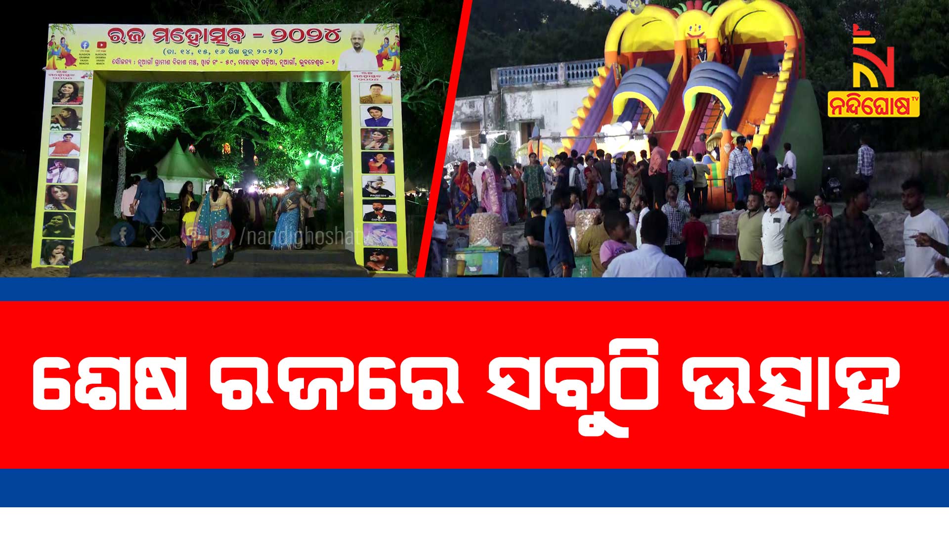 ରଜକୁ ଧୁମଧାମରେ ପାଳନ କରୁଛନ୍ତି କେନ୍ଦ୍ରାପଡ଼ା ବାସୀ । ପୋଡ଼ ପିଠା ଓ ପାନ ବାଣ୍ଟି ଆନନ୍ଦର ସହ ପାଳନ କରୁଛନ୍ତି ରଜ ପର୍ବ । ରାଜନଗର ଡାଙ୍ଗମାଳର ମାଆ ଜୟଦୂର୍ଗାଙ୍କ ପୀଠରେ ରଜ ଉତ୍ସବ ପାଳନ କରାଯାଉଛି । ଡାଙ୍ଗମାଳ ଓ ଖମାରସାହି ପଞ୍ଚାୟତର ୫ଟି ସ୍ଵଂୟ ସହାୟକ ଗୋଷ୍ଠୀର ମାଆମାନେ ପୋଡ଼ ପିଠା ଓ ରଜ ପାନ ସମସ୍ତଙ୍କୁ ବାଣ୍ଟିଛନ୍ତି । ସେପଟେ ରଜ ଉପଲକ୍ଷେ ଖୋର୍ଦ୍ଧା ଜିଲ୍ଲା ଟାଙ୍ଗୀ ବଳରାମ ଦେବ ମନ୍ଦିର ପରିସରରେ ଦୀର୍ଘ ୫୦ ବର୍ଷ ହେଲା ଆୟୋଜିତ ହୋଇଆସୁଛି ପାଲା ମହୋତ୍ସବ । ଟାଙ୍ଗୀ ବଳରାମ ଦେବ କୈବର୍ତ୍ତ ସଙ୍ଘ ପକ୍ଷରୁ ଏହି ଉତ୍ସବ ପାଳନ କରାଯାଉଥିବା ବେଳେ ପ୍ରବଳ ଜନସମାଗମ ଦେଖିବାକୁ ମିଳିଛି । ରାୟଗଡା ଜିଲ୍ଲା ମୁନିଗୁଡା ଅଂଚଳରେ ବି ରଜ ପର୍ବକୁ ଧୁମଧାମରେ ପାଳନ କରାଯାଇଛି ।