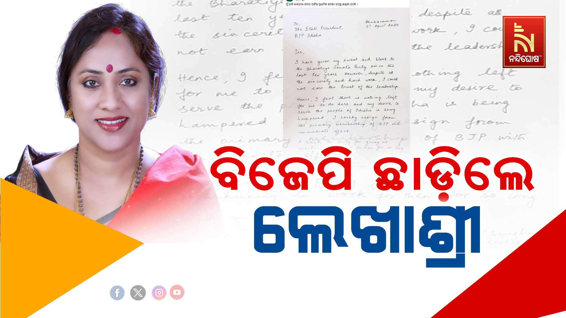 ବିଜେପି ରାଜ୍ୟ ସଭାପତି ମନମୋହନ ସାମଲଙ୍କ ପାଖକୁ ଇସ୍ତଫା ପତ୍ର ପଠାଇଛନ୍ତି ଲେଖାଶ୍ରୀ । ସେ ଦଳର ପ୍ରାଥମିକ ସଦସ୍ୟତା ପଦରୁ ଇସ୍ତଫା ଦେଇଛନ୍ତି । ବିଜେପିରେ ଉପସଭାପତି ଥିଲେ ଲେଖାଶ୍ରୀ ।
