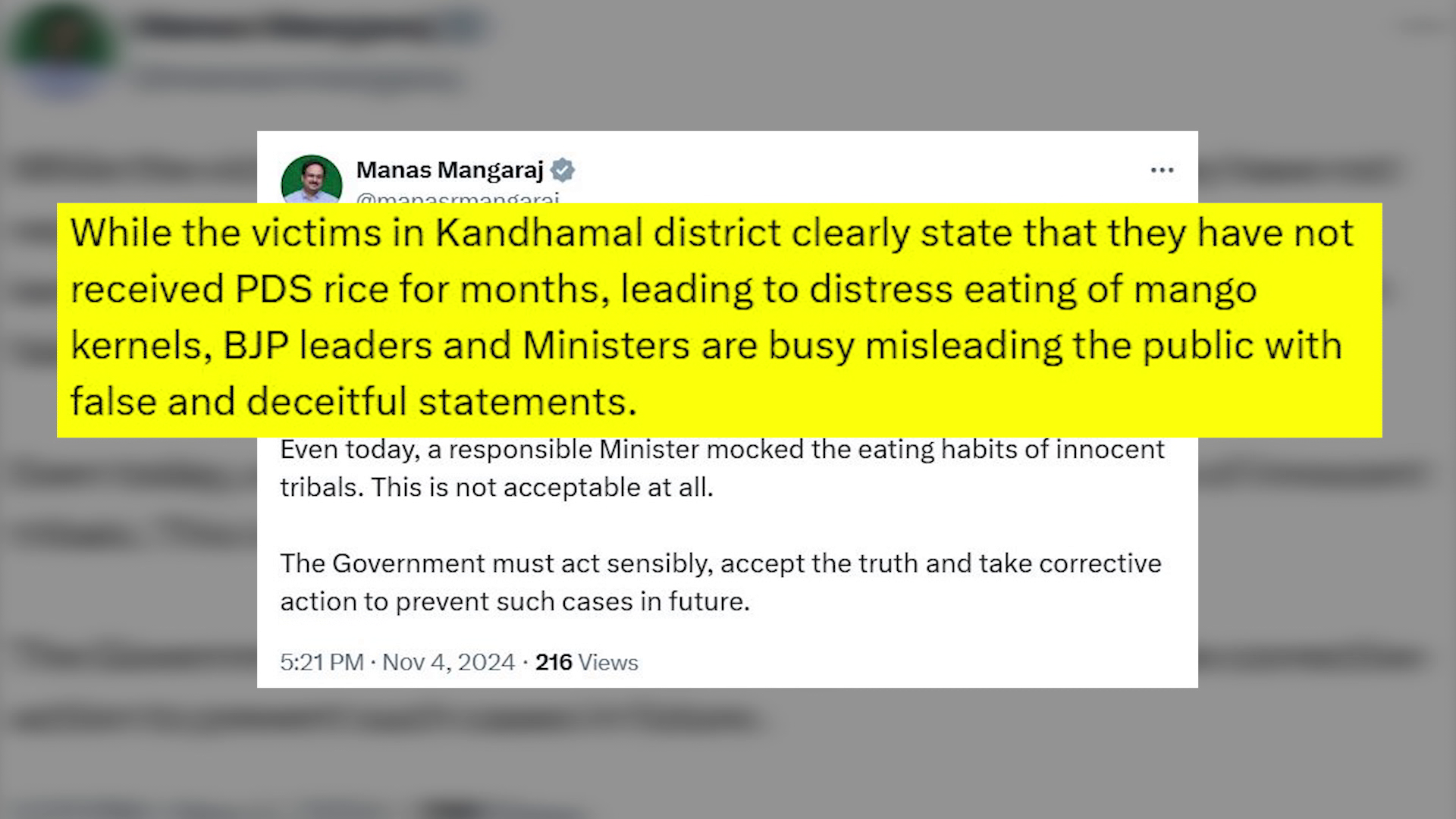 ନନ୍ଦିଘୋଷ ବ୍ୟୁରୋ: ଆମ୍ବ ଟାକୁଆ ଖାଇ ୨ ଆଦିବାସୀଙ୍କ ମୃତ୍ୟୁ ଘଟଣାରେ ରାଜ୍ୟ ସରକାରଙ୍କୁ ସମାଲୋଚନା କରିଛନ୍ତି ବିଜେଡି ରାଜ୍ୟସଭା ସାଂସଦ ମାନସ ମଙ୍ଗରାଜ।ଏଭଳି ଏକ ସ୍ପର୍ଶକାତର ଘଟଣାରେ ରାଜ୍ୟ ସରକାରଙ୍କ ମନ୍ତ୍ରୀ ମିଛ କହୁଛନ୍ତି ବୋଲି କହିଛନ୍ତି ମାନସ ମଙ୍ଗରାଜ। ପିଡିଏସ ଚାଉଳ ନପାଇ ଆମ୍ବ ଟାକୁଆ ଖାଉଥିଲେ ଆଦିବାସୀ। ରାଜ୍ୟ ମନ୍ତ୍ରୀମାନେ କିନ୍ତୁ ଲୋକଙ୍କୁ ଭୁଆଁ ବୁଲାଉଛନ୍ତି। ମନ୍ତ୍ରୀମାନେ ଦେଉଛନ୍ତି ମିଛ ଓ ଗୋଳମାଳିଆ ବିବୃତି। ଏହି ଘଟଣାରେ ଆଜି ଜଣେ ମନ୍ତ୍ରୀ ଆଦିବାସୀଙ୍କ ଖାଦ୍ୟାଭ୍ୟାସକୁ ଉପହାସ କରିଛନ୍ତି। ସରକାର ଏହି ଘଟଣାରେ ସତକୁ ଗ୍ରହଣ କରିବା ଉଚିତ। ଭବିଷ୍ୟତରେ ଏଭଳି ଘଟଣା ନଘଟିବା ନେଇ ସରକାର ପଦକ୍ଷେପ ନିଅନ୍ତୁ ବୋଲି କହିଛନ୍ତି ମାନସ ମଙ୍ଗରାଜ।