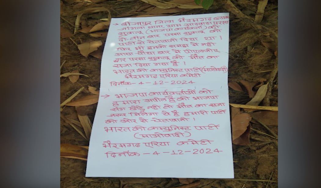 ହତ୍ୟା ପରେ ମାଓବାଦୀମାନେ ଘଟଣା ସ୍ଥଳରେ ଦୁଇଟି ହାତ ଲେଖା ପୋଷ୍ଟର ଛାଡି ଯାଇଛନ୍ତି । ଯେଉଁଥିରେ ଦୁଇ ପୂର୍ବତନ ସରପଞ୍ଚ ବିଜେପି କର୍ମୀ ହୋଇଥିବାରୁ ଭୈରବଗଡ ମାଓ ସଂଗଠନ ଏହି ଦୁଇ ଜଣଙ୍କୁ ମୃତ୍ୟୁ ଦଣ୍ଡ ଦେଇଛି ବୋଲି ଲେଖା ରହିଛି ।.