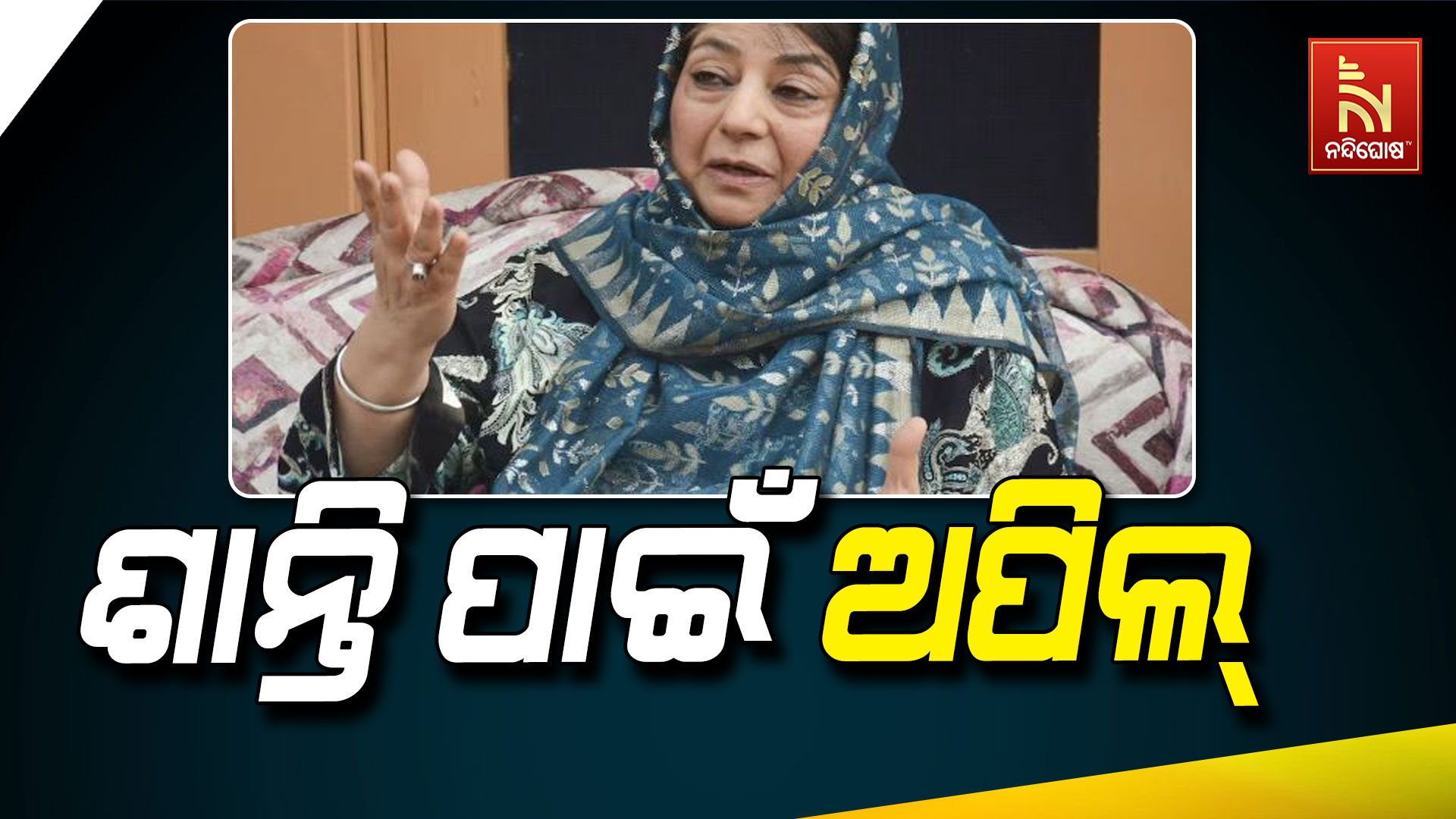 ନନ୍ଦିଘୋଷ ବ୍ୟୁରୋ: ଭାରତ-ପାକିସ୍ତାନ ମଧ୍ୟରେ ଅଘୋଷିତ ଯୁଦ୍ଧ ଜୋରଦାର ହୋଇଛି । ପହଲଗାମ ଆତଙ୍କବାଦୀ ଆକ୍ରମଣର ବଦଲା ନେଉଛି ଭାରତ । ଭାରତୀୟ ସେନା ପକ୍ଷରୁ କଡ଼ା ଜବାବ ଦିଆଯାଉଥିବାବେଳେ ଆତଙ୍କୀ ଆଡ୍ଡା ଉପରେ ବାରମ୍ବାର ପ୍ରହାର କରାଯାଉଛି । ସେପଟେ ଯୁଦ୍ଧ କରିବା ପାଇଁ ପାକିସ୍ତାନ ମଧ୍ୟ ଚାହିଁ ବସିଛି । ସୋସିଆଲ ମିଡିଆ ଏବଂ ଗଣମାଧ୍ୟମରେ ମଧ୍ୟ ଜବାବ ଦେବୁ ବୋଲି ପ୍ରତିକ୍ରିୟା ରଖୁଛନ୍ତି । ଏପଟେ ଏଭଳି ଯୁଦ୍ଧ ପରିସ୍ଥିତି ମଧ୍ୟରେ ଶାନ୍ତି ପ୍ରତିଷ୍ଠା କରିବାକୁ ଅପିଲ୍ କରିଛନ୍ତି ଜମ୍ମୁ-କାଶ୍ମୀରର ପୂର୍ବତନ ମୁଖ୍ୟମନ୍ତ୍ରୀ ମେହେବୁବା ମୁଫତି ।