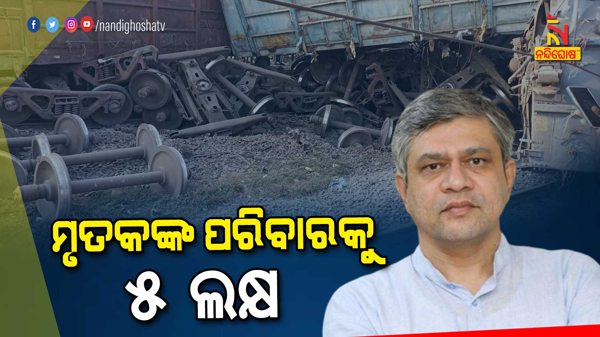 ନୂଆଦିଲ୍ଲୀ: କୋରାଇ ଷ୍ଟେସନରେ ପଣ୍ୟବାହୀ ଟ୍ରେନ୍ ଦୁର୍ଘଟଣା । ରେଳବାଇ ପକ୍ଷରୁ ଆର୍ଥିକ ସହାୟତା ଘୋଷଣା । ରେଳମନ୍ତ୍ରୀ ଅଶ୍ୱିନୀ ବୈଷ୍ଣବ ଟ୍ୱିଟ୍ କରି ଏନେଇ ସୂଚନା ଦେଇଛନ୍ତି । ଏହି ଦୁର୍ଘଟଣାରେ ମୃତ୍ୟୁ ବରଣ କରିଥିବା ବ୍ୟକ୍ତିମାନଙ୍କ ପ୍ରତି ଗଭୀର ଦୁଃଖ ପ୍ରକାଶ କରିଛନ୍ତି ରେଳ ମନ୍ତ୍ରୀ ଅଶ୍ୱିନୀ ବୈଷ୍ଣବ । ମୃତ ବ୍ୟକ୍ତିମାନଙ୍କ ପରିବାର ସଦସ୍ୟମାନଙ୍କୁ ୫ ଲକ୍ଷ, ଗୁରୁତର ଆହତମାନଙ୍କୁ ୧ ଲକ୍ଷ ଏବଂ ସାମାନ୍ୟ ଆହତ ବ୍ୟକ୍ତିମାନଙ୍କୁ ୨୫ ହଜାର ଟଙ୍କା ଆର୍ଥିକ ସହାୟତା ଘୋଷଣା କରିଛନ୍ତି ରେଳ ମନ୍ତ୍ରୀ ଅଶ୍ୱିନୀ ବୈଷ୍ଣବ ।