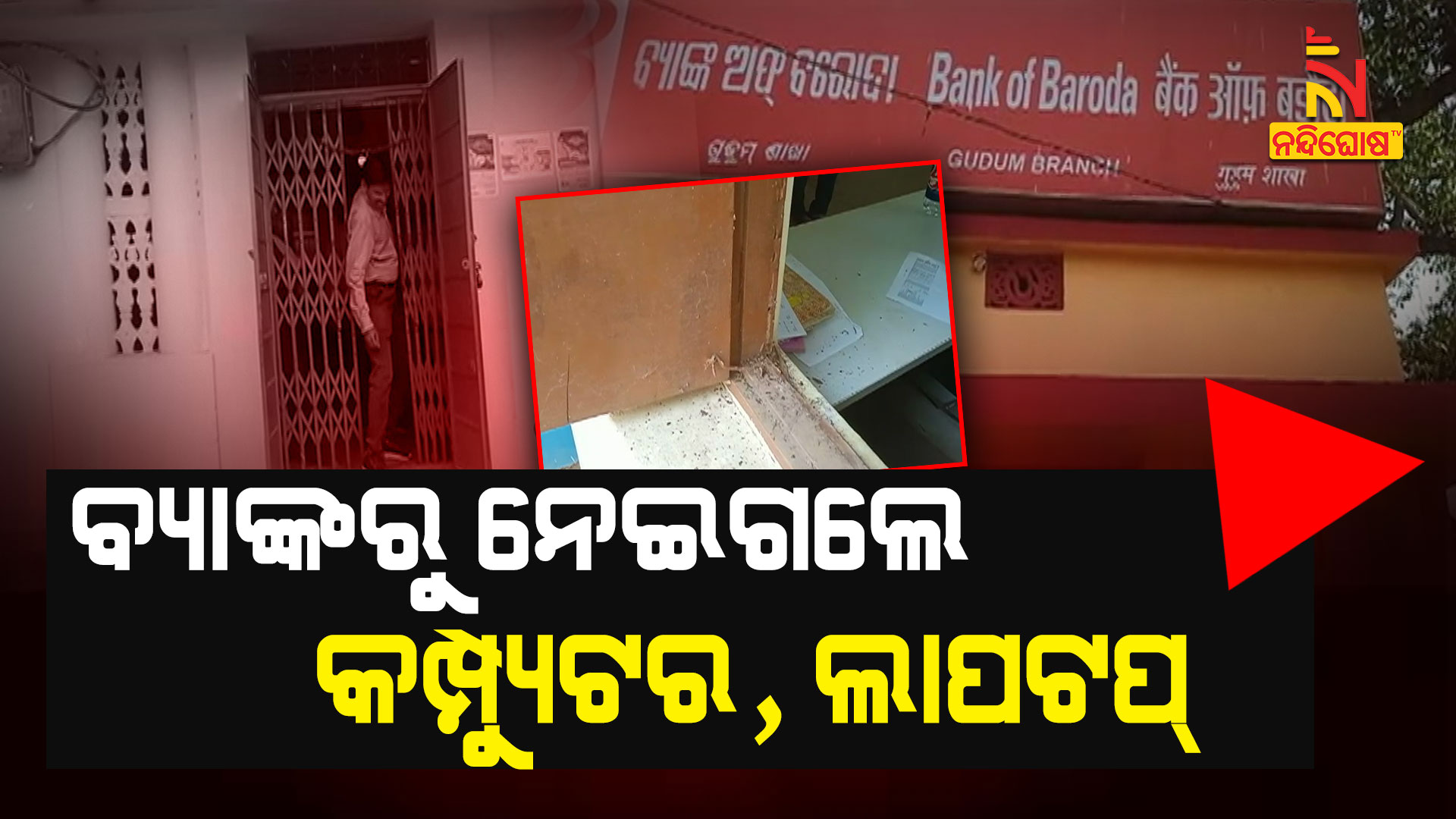ଖୋର୍ଦ୍ଧା: ସଦର ଥାନା ଗୁଡୁମ୍ ଗାଁରେ ଥିବା ବ୍ୟାଙ୍କ୍ ଅଫ ବରୋଦା ଶାଖା କାର୍ଯ୍ୟାଳୟରୁ ଲୁଟ୍ । ଗତ ରାତିରେ ଡକାୟତି ହୋଇଥିବାର ଅଭିଯୋଗ ହୋଇଛି। ଡକାୟତ ମାନେ ବ୍ୟାଙ୍କରୁ କମ୍ପ୍ୟୁଟର, ଲାପଟପ୍, ଏବଂ ଅନ୍ୟ କିଛି ସାମଗ୍ରୀ ନେଇଯାଇଛନ୍ତି।