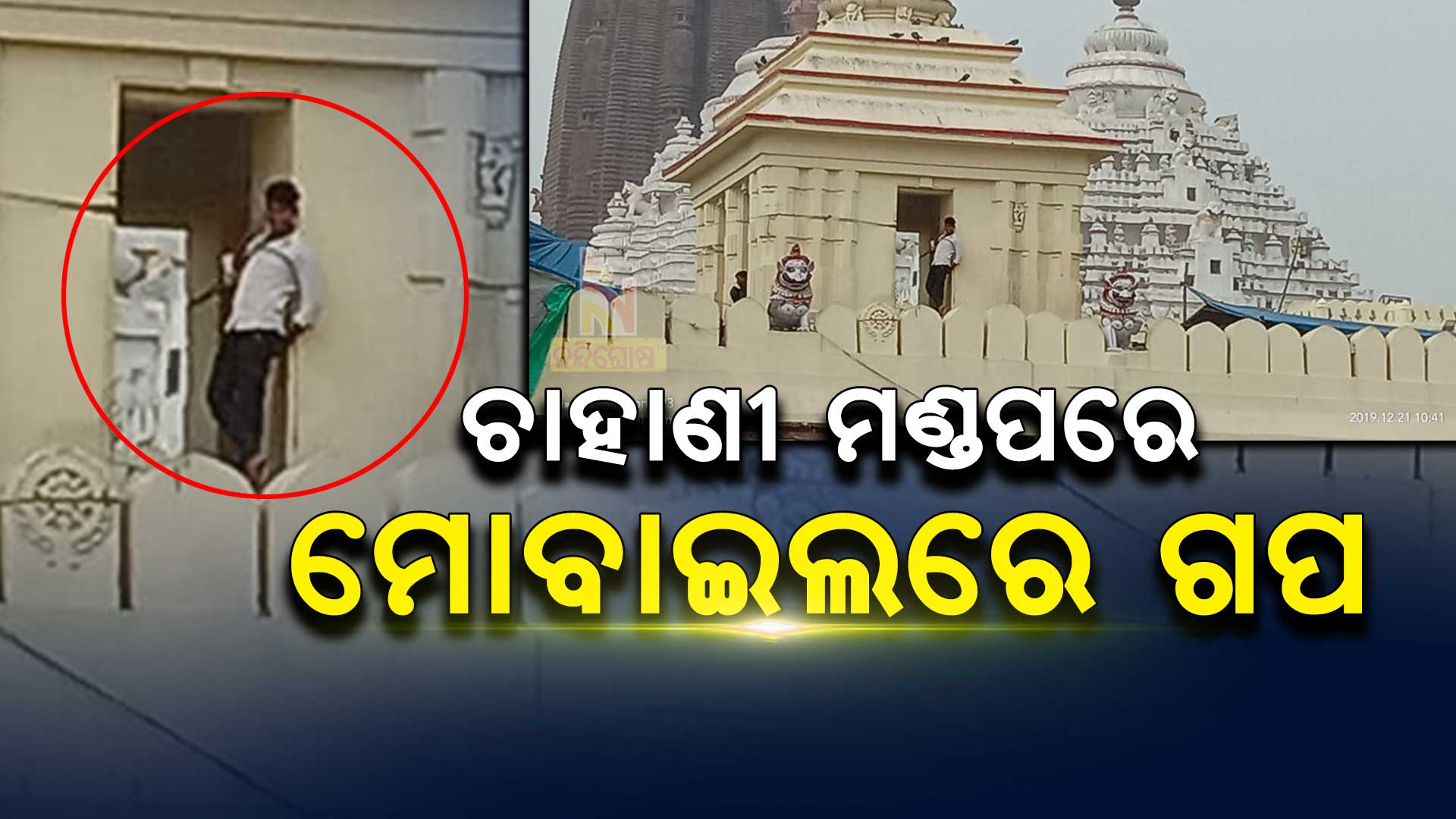 ପୁରୀ : ଶ୍ରୀମନ୍ଦିରର ସୁରକ୍ଷାକୁ ନେଇ ପୁଣି ଉଠିଲା ପ୍ରଶ୍ନ । କାରଣ, ଶ୍ରୀମନ୍ଦିର ଚାହାଣି ମଣ୍ଡପରେ ଜଣେ ଯୁବକ ଫୋନରେ ଭିନ୍ନ ଭିନ୍ନ ଭାଗ ଭଙ୍ଗୀରେ କଥା ହେଉଥିବାର ଫଟୋ ଇରାଲ୍ ହୋଇଛି । ଧଳା ଶାର୍ଟ ପିନ୍ଧି ଏ ଯୁବକ ଜଣଙ୍କ କାନ୍ଥକୁ ଡେରି ହୋଇ ମୋବାଇଲରେ କଥା ହେଉଥିବାର ଫଟୋ ଭାଇରାଲ୍ ହୋଇଛି ।