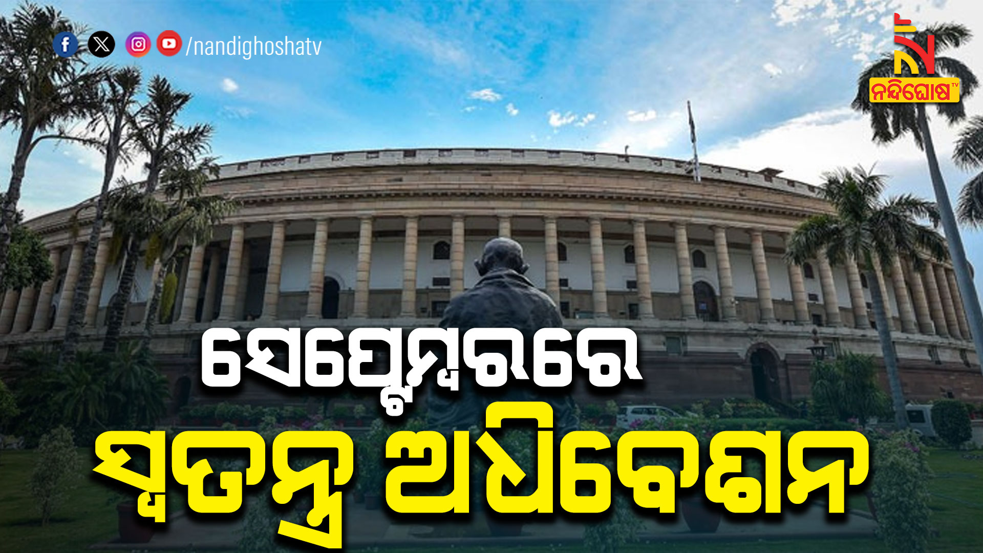 ନୂଆଦିଲ୍ଲୀ: ଆସନ୍ତା ସେପ୍ଟେମ୍ବର ୧୮ରୁ ୨୨ ପର୍ଯ୍ୟନ୍ତ ସଂସଦର ସ୍ବତନ୍ତ୍ର ଅଧିବେଶନ । କେନ୍ଦ୍ର ସରକାର ୫ ଦିବସୀୟ ସ୍ବତନ୍ତ୍ର ଅଧିବେଶନ ଡାକିଛନ୍ତି । ସଂସଦୀୟ ବ୍ୟାପାର ମନ୍ତ୍ରୀ ପ୍ରହ୍ଲାଦ ଯୋଶୀ ଏନେଇ ଟ୍ବିଟ କରି ସୂଚନା ଦେଇଛନ୍ତି । ଏହା ହେବ ୧୭ତମ ଲୋକସଭାର ୧୩ତମ ଅଧିବେଶନ । ସେହିପରି ରାଜ୍ୟସଭାର ଏହା ହେବ ୨୬୧ତମ ଅଧିବେଶନ ।