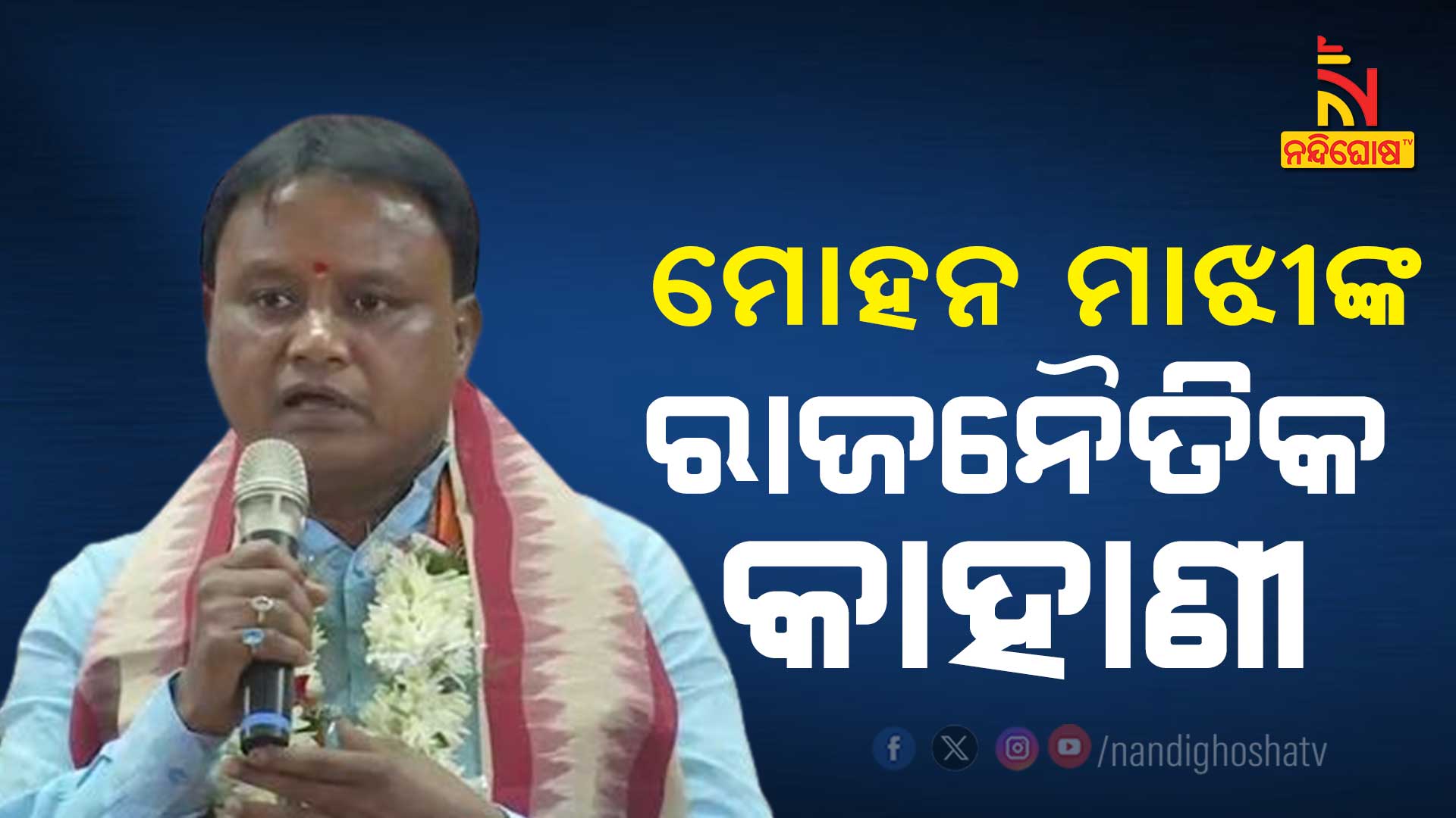 ନନ୍ଦିଘୋଷ ବ୍ୟୁରୋ: ଓଡ଼ିଶାକୁ ମିଳିଛି ନୂଆ ମୁଖ୍ୟମନ୍ତ୍ରୀ । ବିଜେପି ବିଧାୟକ ଦଳ ବୈଠକ ପରେ ମୋହନ ଚରଣ ମାଝୀଙ୍କୁ ମୁଖ୍ୟମନ୍ତ୍ରୀ ଭାବେ ବାଛିଛି ଦଳ । ତେବେ ସରପଞ୍ଚରୁ ସିଏମ ବନିଥିବା ମୋହନ ଚରଣ ମାଝୀ ୧୯୭୨ ଜାନୁଆରୀ ୬ ତାରିଖରେ ଜନ୍ମ ଗ୍ରହଣ କରିଛନ୍ତି । ସେ ୪ଥର ବିଧାୟକ ହୋଇଥିବାବେଳେ ପ୍ରଥମେ ସେ ଶିଶୁ ବିଦ୍ୟାମନ୍ଦିରରେ ଗୁରୁଜୀ ଭାବେ ପାଠ ପଢ଼ାଉଥିଲେ । ପରେ ସେ ସରପଞ୍ଚ ଭାବେ ନିର୍ବାଚିତ ହୋଇଥିଲେ । ଆଉ ୨୦୦୦ ମସିହାରେ ପ୍ରଥମେ କେନ୍ଦୁଝରର ବିଧାୟକଭାବେ ନିର୍ବାଚିତ ହୋଇ ଓଡ଼ିଶା ବିଧାନସଭାକୁ ନିର୍ବାଚିତ ହୋଇଥିଲେ । ସେ ୪ଥର ବିଧାୟକଭାବେ ଭାବେ ନିର୍ବାଚିତ ହୋଇଥିବାବେଳେ ବିଜେପିର ଜଣେ ଦକ୍ଷ ସଂଗଠନ ଥିଲେ । ମୁଖ୍ୟମନ୍ତ୍ରୀଭାବେ ତାଙ୍କ ନାମ ଘୋଷଣା ହେବା ପରେ ଛୁଟିଛି ଶୁଭେଚ୍ଛାର ସୁଅ ।