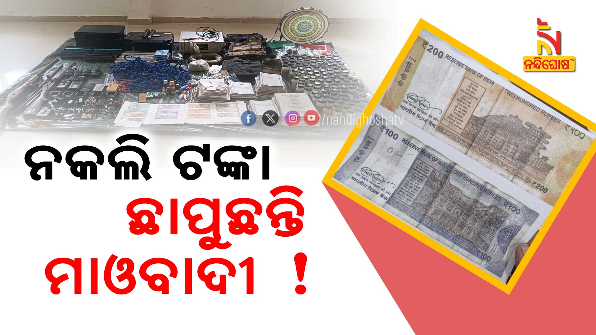ମାଲକାନଗିରି : ନକଲି ଟଙ୍କା ଛାପୁଛନ୍ତ ମଖ୍ୟମନ୍ତ୍ରୀ ! ଛତିଶଗଡ ସୁକମାରେ ନକ୍ସଲ ବିରୋଧୀ ଅଭିଯାନ ଭିତରେ ପ୍ରଥମ ଥର ପାଇଁ ମାଓବାଦୀଙ୍କ ଠାରୁ ମିଳିଲା ଟଙ୍କା ଛାପା ଉପକରଣ। ୫୦, ୧୦୦, ୨୦୦ ଓ ୫୦୦ ଟଙ୍କା ନକଲି ନୋଟର ନମୁନା ଜବତ ହୋଇଛି। ସୁକମା ପୋଲିସ ପକ୍ଷରୁ ଏନେଇ ସୂଚନା ମିଳିଛି । ଟଙ୍କା ଅଭାବରେ ମାଓବାଦୀମାନେ ନକଲି ନୋଟ ବ୍ୟବହାର କରୁଥିବା ଜଣାପଡିଛି। କୋରାଜଗୁଡା ଜଙ୍ଗଲରୁ ବିପୁଳ ପରିମାଣର ନୋଟ ଜବତ ହୋଇଛି।