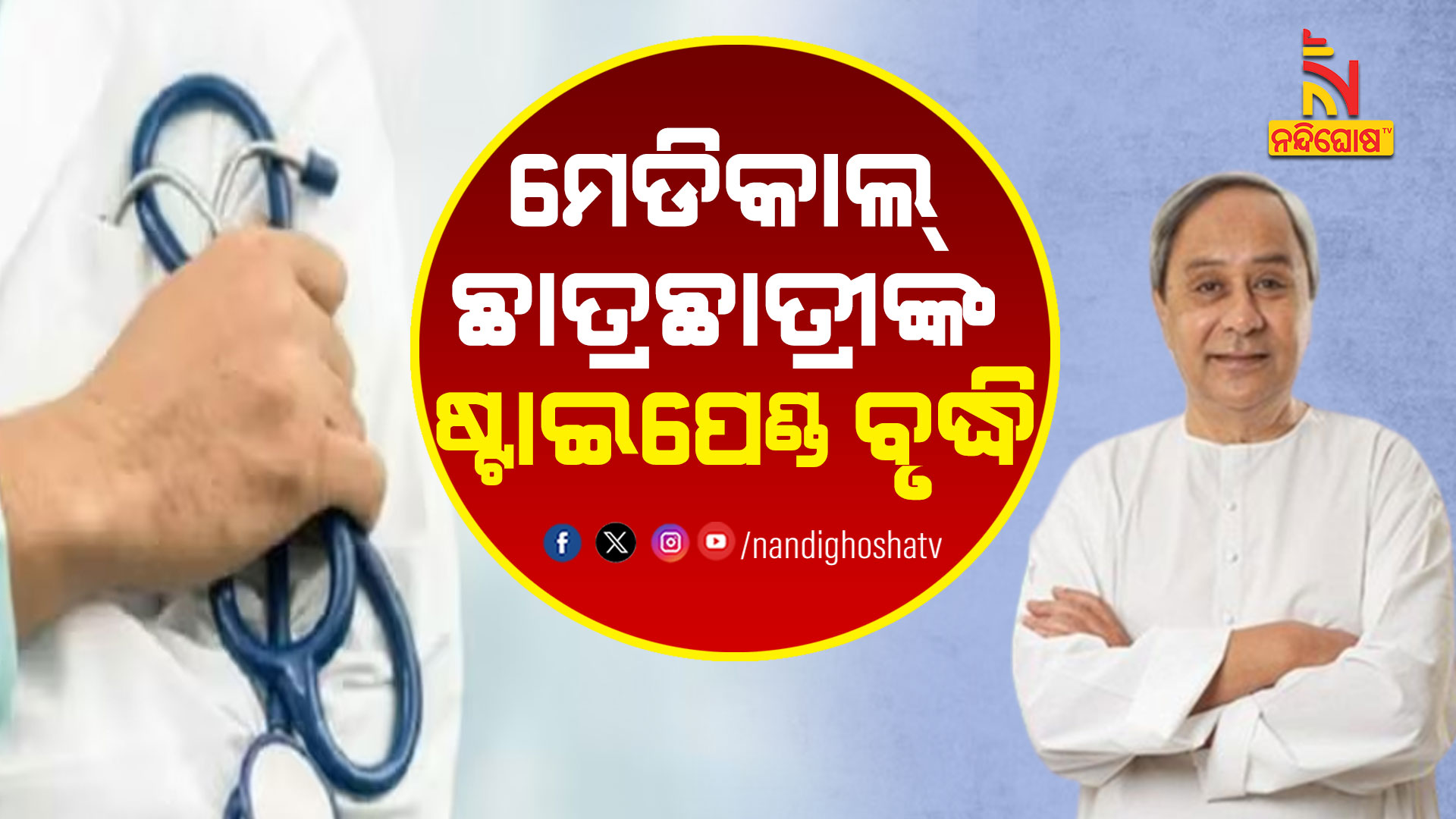 ଭୁବନେଶ୍ୱର: ବଢିଲା ମେଡିକାଲ ଛାତ୍ରଛାତ୍ରୀଙ୍କ ମାସିକ ଷ୍ଟାଇପେଣ୍ଡ। ଷ୍ଟାଇପେଣ୍ଡ ବୃଦ୍ଧି କଲେ ମୁଖ୍ୟମନ୍ତ୍ରୀ ନବୀନ ପଟ୍ଟନାୟକ। ନର୍ସିଂ, ଫାର୍ମାସୀ ଓ ଆଲାଏଡ୍ ମେଡିକାଲ ଛାତ୍ରଛାତ୍ରୀଙ୍କ ଷ୍ଟାଇପେଣ୍ଡ ବୃଦ୍ଧି ହୋଇଛି। ଡି.ଫାର୍ମା ଛାତ୍ରଛାତ୍ରୀଙ୍କ ଷ୍ଟାଇପେଣ୍ଡ ୨୫୦ରୁ ୫୦୦ ଟଙ୍କାକୁ ବୃଦ୍ଧି ହୋଇଥିବାବେଳେ ଏଏନଏମଙ୍କ ଷ୍ଟାଇପେଣ୍ଡ ୧ ହଜାରରୁ ୨ହଜାର, ବିଏସସି ନର୍ସିଂ(ଇଣ୍ଟର୍ନସିପ) ଷ୍ଟାଇପେଣ୍ଡ ୨୫୦୦ରୁ ୫ହଜାର, ଏମ.ଫିଲ୍ ଛାତ୍ରଛାତ୍ରୀଙ୍କ ଷ୍ଟାଇପେଣ୍ଡ ୭ହଜାରରୁ ୧୦ହଜାର ଟଙ୍କାକୁ ବୃଦ୍ଧି କରିଛନ୍ତି ରାଜ୍ୟ ସରକାର।