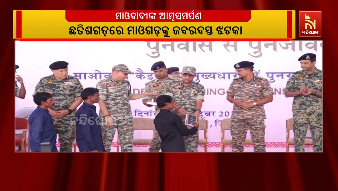 ଛତିଶଗଡ଼ରେ ମାଓଗଡ଼କୁ ଜବରଦସ୍ତ ଝଟକା ଆତ୍ମସମର୍ପଣ କଲେ ୧୭୦ରୁ ଅଧିକ ମାଓବାଦୀ। ସେମାନଙ୍କ ମଧ୍ୟରେ ରହିଛି ଉତ୍ତର ପଶ୍ଚିମ ସବଜୋନାଲ ଇନ ଚାର୍ଜ ରୂପେଶ ସମତେ ଅନେକ ଦୁର୍ଦ୍ଦାନ୍ତ କର୍ମୀ ଓ ନେତା। ଗତକାଲି ୨୭ ଜଣ ମାଓବାଦୀ ଆତ୍ମସମର୍ପଣ କରିଥିଲେ। ସେପଟେ ଗତକାଲି ମହାରାଷ୍ଟ୍ରରେ ୬୧ ଜଣ ମାଓବାଦୀ ସମର୍ପଣ କରିଥିଲେ। ରୂପେଶ ନିଜ ସହ ୧୩୦ ନସ୍କଲଙ୍କୁ ଧରି କରିଥିଲା ଆତ୍ମସମର୍ପଣ। ସେମାନଙ୍କ ମଧ୍ୟରେ ଥିଲେ କେନ୍ଦ୍ରୀୟ କମିଟି ସଦସ୍ୟ, ୨ ଜଣ ଡିକେଏସଜେସି ସଦସ୍ୟ ଓ ୧୫ ଜଣ ଡିଭିସିଏମ କ୍ୟାଡର। ଏହା ସହ ମାଦ୍ ଡିଭିଜନର ବହୁ କର୍ମୀ ବି ଆତ୍ମସମର୍ପଣ କରିଛନ୍ତି। ଆତ୍ମସମର୍ପଣ କରିଥିବା ସମସ୍ତ ମାଓବାଦୀଙ୍କୁ ସରକାରୀ ଯୋଜନାରେ ସହାୟତା ଯୋଗାଇଦିଆଯିବ।