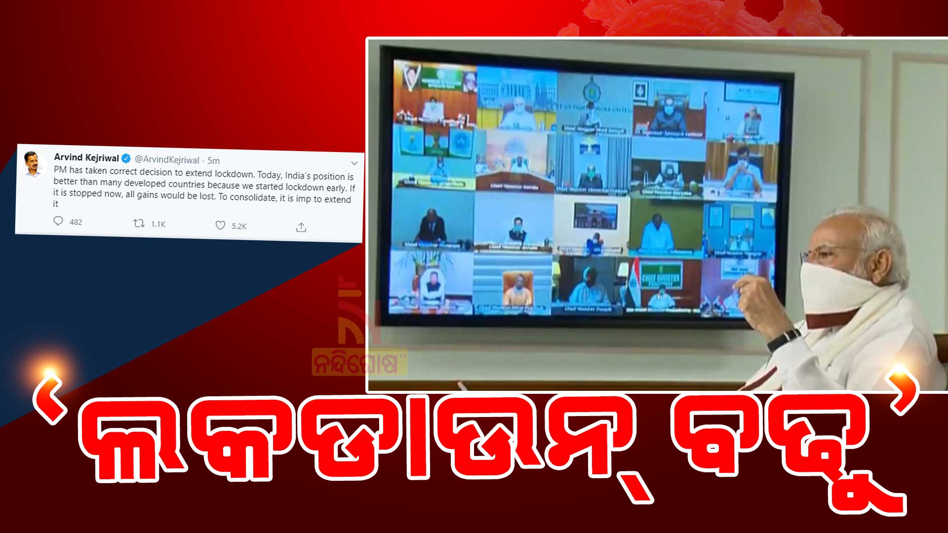 ହାତ ତିଆରି ମାସ୍କ ପିନ୍ଧି ମୁଖ୍ୟମନ୍ତ୍ରୀଙ୍କ ସହ ଆଲୋଚନା କଲେ ପ୍ରଧାନମନ୍ତ୍ରୀ,କେଜ୍ରିୱାଲ କହିଲେ ଲକଡାଉନ୍ ବଢାଅ