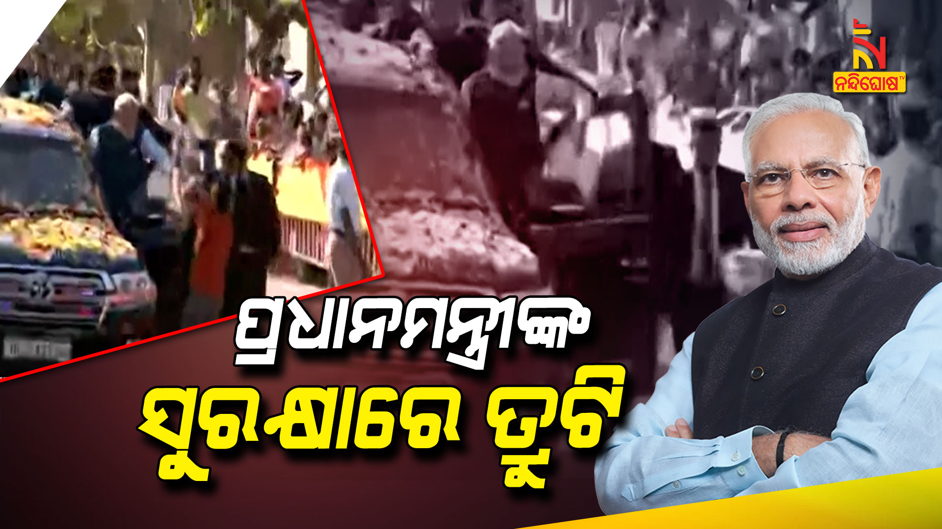 ସୂଚନା ମୁତାବକ, ରୋଡ ଶୋ’ ସମୟରେ ଜଣେ ଯୁବକ ଅଚାନକ ପିଏମଙ୍କ ଗାଡ଼ି ପାଖରେ ପହଞ୍ଚି ଯାଇଥିଲା । ଯୁବକ ଜଣଙ୍କ ପ୍ରଧାନମନ୍ତ୍ରୀଙ୍କୁ ଫୁଲ ମାଳା ପିନ୍ଧାଇବା ପାଇଁ ଚାହୁଁଥିଲା । ଅବଶ୍ୟ, ବ୍ୟକ୍ତି ଜଣଙ୍କୁ ପିଏମଙ୍କ ପାଖକୁ ଆସୁଥିବାର ଦେଖି ସୁରକ୍ଷାକର୍ମୀ ଅଟକାଇ ଦେଇଥିଲେ । ତାକୁ ତୁରନ୍ତ ପ୍ରଧାନମନ୍ତ୍ରୀଙ୍କ କନଭୟ ଠାରୁ ଦୂରକୁ ନିଆଯାଇଥିଲା । ଏହି ସମୟରେ ଭିଡିଓଟି ଏବେ ଭାଇରାଲ୍ ହେବାରେ ଲାଗିଛି । ପ୍ରଧାନମନ୍ତ୍ରୀଙ୍କ ଚାରି ପାଖରେ ଏତେ ସୁରକ୍ଷା ବ୍ୟବସ୍ଥା ଥିଲେ ମଧ୍ୟ ବ୍ୟକ୍ତି ଜଣଙ୍କ ପ୍ରଧାନମନ୍ତ୍ରୀଙ୍କ ଗାଡ଼ି ପାଖକୁ କେମିତି ପହଞ୍ଚିଲେ ବୋଲି ଲୋକମାନେ ପ୍ରଶ୍ନ କରିଛନ୍ତି ।