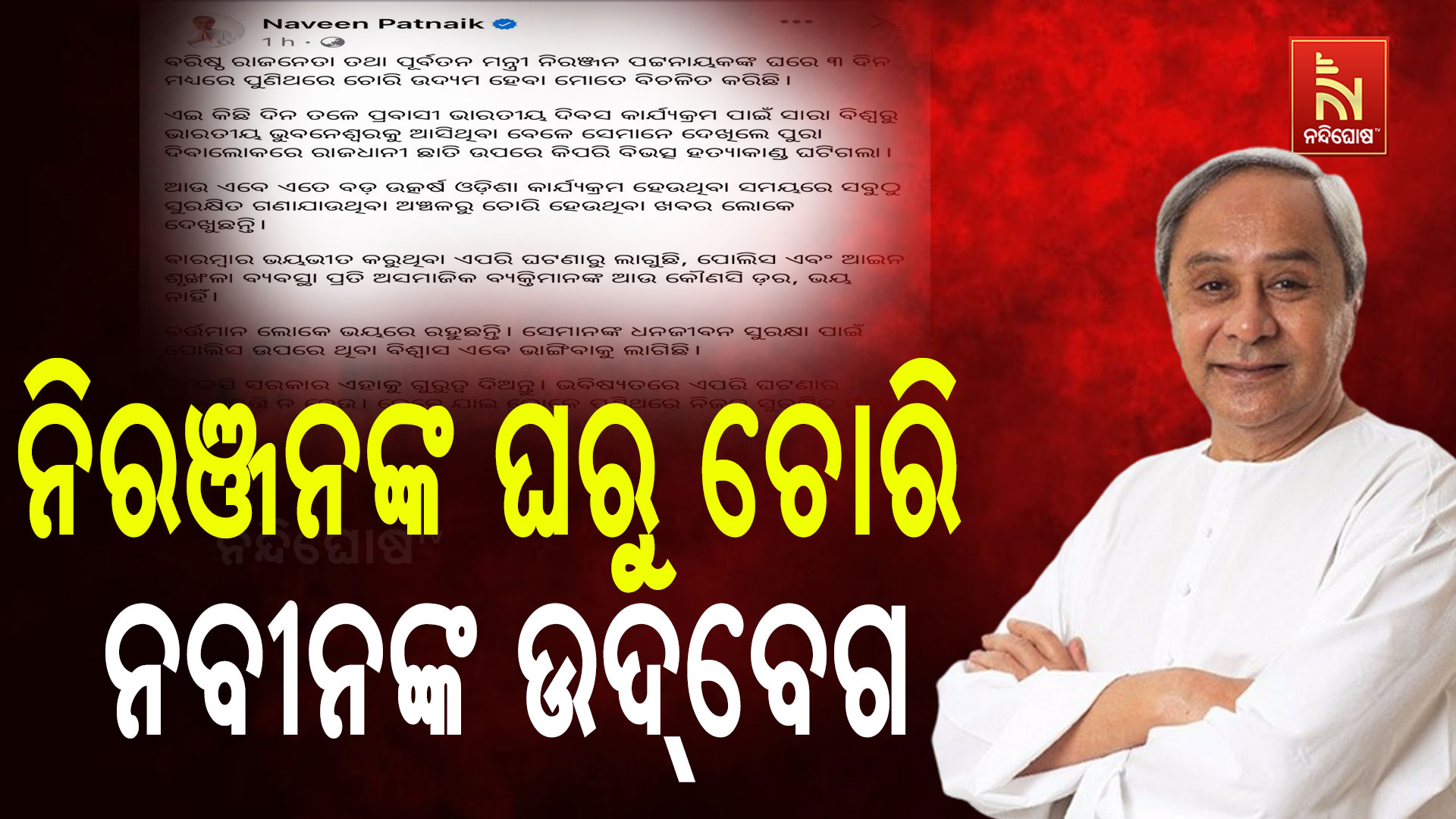 ଭୁବନେଶ୍ବର : ବରିଷ୍ଠ କଂଗ୍ରେସ ନେତା ନିରଞ୍ଜନ ପଟ୍ଟନାୟକଙ୍କ ଘରେ ପୁଣି ଥରେ ଚୋରି ଉଦ୍ୟମକୁ ନେଇ ଉଦବେଗ ପ୍ରକାଶ କରିଛନ୍ତି ବିଜେଡି ସୁପ୍ରିମୋ ନବୀନ ପଟ୍ଟନାୟକ। ସୋସିଆଲ ମିଡିଆରେ ନବୀନ ଉଲ୍ଲେଖ କରିଛନ୍ତି, ନିରଞ୍ଜନ ପଟ୍ଟନାୟକଙ୍କ ଘରେ ୩ ଦିନ ଭିତରେ ପୁଣି ଥରେ ଚୋରି ଉଦ୍ୟମ ହେବା ମତେ ବିଚଳିତ କରିଛି। କିଛି ଦିନ ତଳେ ପ୍ରବାସୀ ଭାରତୀୟ ଦିବସ ବେଳେ ସାରା ବିଶ୍ଵରୁ ଭାରତୀୟମାନେ ଭୁବନେଶ୍ଵର ଆସିଥିବା ବେଳଏ ରାଜଧାନୀ ଛାତି ଉପରେ ଏକ ବୀଭତ୍ସ ହତ୍ଯାକାଣ୍ଡ ହେଲା। ଏବେ ଏତେ ବଡ଼ ଉତ୍କର୍ଷ ଓଡ଼ିଶା କାର୍ଯ୍ୟକ୍ରମ ଚାଲିଥିବା ବେଳେ ସବୁଠୁ ସୁରକ୍ଷିତ ଗଣାଯାଉଥିବା ଅଞ୍ଚଳରୁ ଚୋରି ହେବା ଲୋକେ ଦେଖୁଛନ୍ତି। ଏଥିରୁ ଲାଗୁଛି ପୋଲିସ ଓ ଆଇନ ଶୃଙ୍ଖଳା ବ୍ୟବସ୍ଥା ପ୍ରତି ଅସାମାଜିକ ବ୍ୟକ୍ତିଙ୍କ ଆଉ କୌଣସି ଡର, ଭୟ ନାହିଁ। ବର୍ତ୍ତମାନ ଲୋକେ ଭୟରେ ରହୁଛନ୍ତି। ଧନ ଜୀବନ ସୁରକ୍ଷା ପାଇଁ ପୋଲିସ ଉପରେ ଥିବା ବିଶ୍ଵାସ ଏବେ ଭାଙ୍ଗିବାକୁ ଲାଗିଛି। ବିଜେପି ସରକାର ଏଥିପ୍ରତି ଦୃଷ୍ଟି ଦିଅନ୍ତୁ। ଭବିଷ୍ଯତରେ ଏପରି ଘଟଣାର ପୁନରାବୃତ୍ତି ନ ହେଉ। ତେବେ ଯାଇ ଲୋକେ ନିଜକୁ ପୁଣି ଥରେ ସୁରକ୍ଷିତ ମନେ କରିବେ ବୋଲି ଉଲ୍ଲେଖ କରିଛନ୍ତି ନବୀନ ପଟ୍ଟନାୟକ।