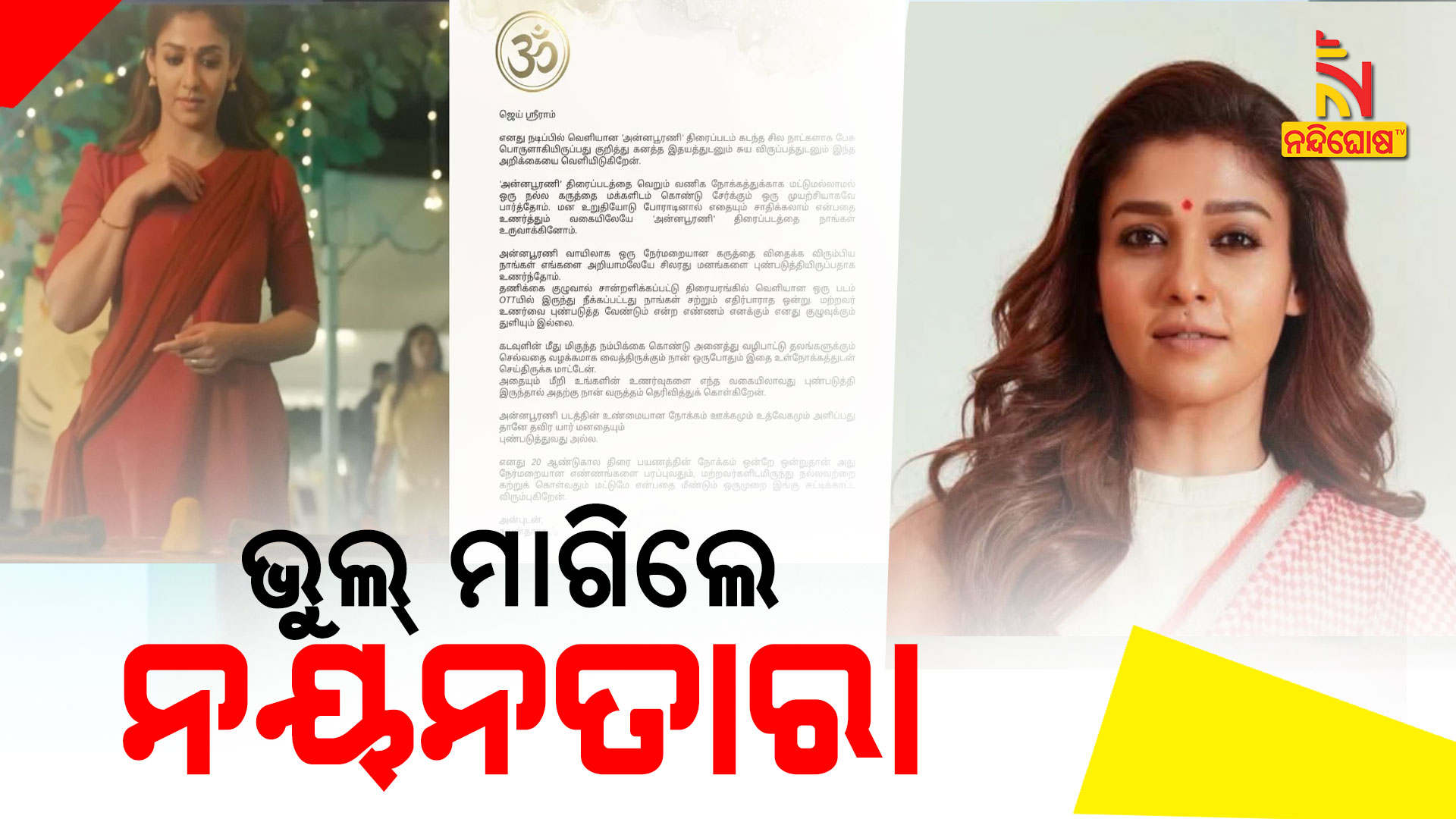 ନନ୍ଦିଘୋଷ ବ୍ୟୁରୋ : ଭୁଲ୍ ମାଗିଲେ ଅନ୍ନପୂର୍ଣ୍ଣୀ ସିନେମା ଷ୍ଟାର ନୟନତାରା। ଅନ୍ନପୂର୍ଣ୍ଣୀ ଫିଲ୍ମକୁ ନେଇ ଦର୍ଶକଙ୍କ ଆଘାତ ଥିବାରୁ କ୍ଷମା ପ୍ରାର୍ଥନା କରିଛନ୍ତି ଅଭିନେତ୍ରୀ ନୟନତାରା। କାହାର ଧର୍ମୀୟ ଭାବନାକୁ କ୍ଷତି ପହଞ୍ଚାଇବା ତାଙ୍କର ଉଦ୍ଦେଶ୍ୟ ନଥିଲା ବୋଲି ସେ କହିଛନ୍ତି। ଫିଲ୍ମକୁ ସେନସର ବୋର୍ଡର ସ୍ବୀକୃତି ସତ୍ତ୍ବେ ଏହାକୁ ଓଟିଟି ପ୍ଲାଟଫର୍ମକୁ ବାହାର କରାଯିବ ବୋଲି ସେ କେବେ ଆଶା କରିନଥିଲେ । ତେବେ ଦର୍ଶକଙ୍କ ଭାବନାକୁ ଆଘାତ ହୋଇଥିବାରୁ ନୟନତାରା ଏବଂ ଅନ୍ନପୂର୍ଣ୍ଣୀ ସିନେମାର ପୁରା ଟିମ ତରଫରୁ ସେ କ୍ଷମା ପ୍ରାର୍ଥନା କରିଛନ୍ତି ।