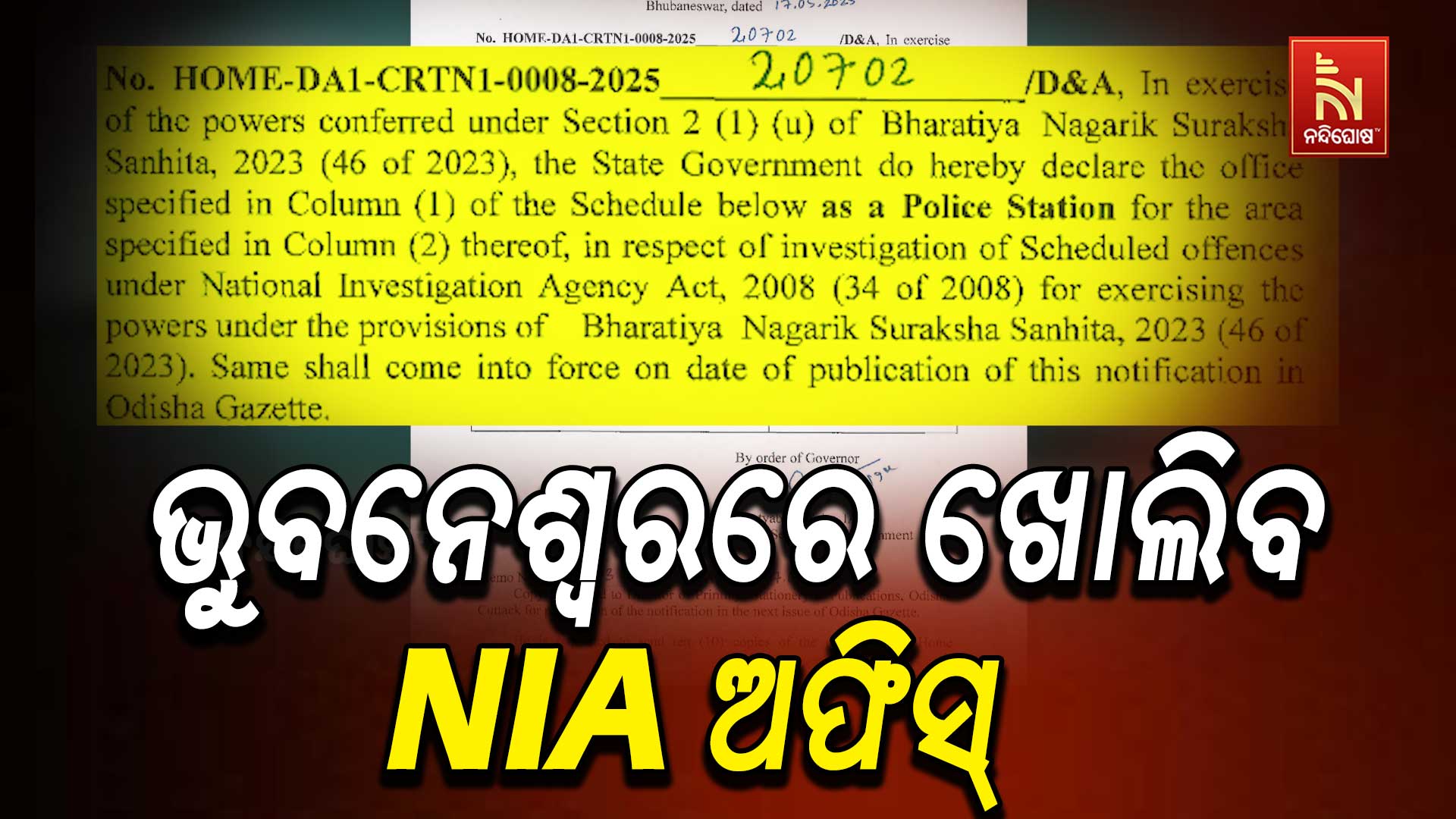 ନନ୍ଦିଘୋଷ ବ୍ୟୁରୋ: ଭୁବନେଶ୍ଵରରେ ଖୋଲିବ ଏନଆଇଏ ଅଫିସ୍ । ଦାୟିତ୍ଵରେ ରହିବେ ଜଣେ ଏସପି ରାଙ୍କର ଅଧିକାରୀ । ନ୍ୟାସନାଲ ଇନଭେଷ୍ଟିଗେସନ ଏଜେନ୍ସିର ଏହି ଶାଖା ଏକ ଥାନା ଭାବେ କାମ କରିବ । ଏହି ଥାନା ଅଧୀନରେ ରହିବ ପୂରା ରାଜ୍ୟ । ଭୁବନେଶ୍ଵର ଭିଏସଏସ୍ ନଗରରେ ଖୋଲିବ ଏହି ଥାନା ।