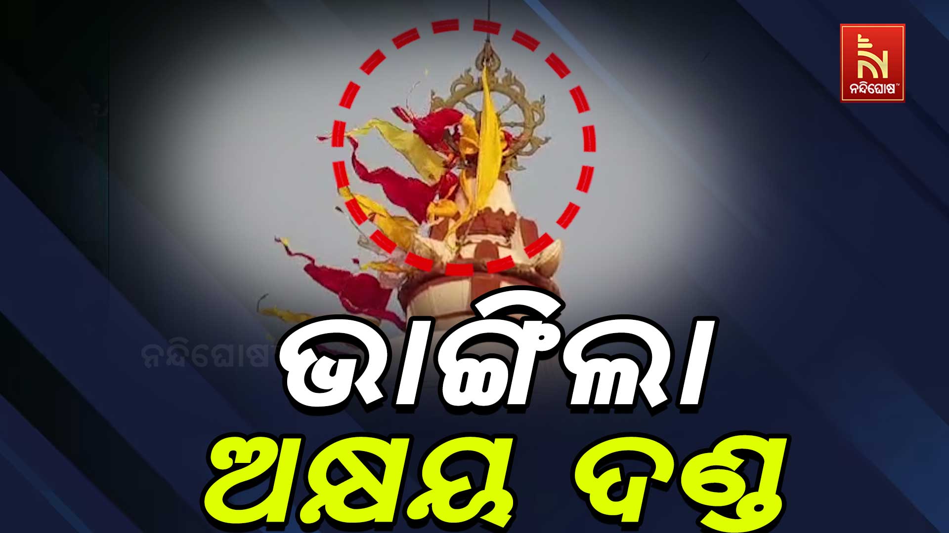 ନନ୍ଦିଘୋଷ ବ୍ୟୁରୋ: ଭାଙ୍ଗିଲା ନୀଳଚକ୍ର ବାନାକୁ ଧାରଣ କରୁଥିବା ଅକ୍ଷୟ ଦଣ୍ଡ । ଶ୍ରୀମନ୍ଦିର ଚୁଡ଼ାରେ ଆଜି ଏହି ଘଟଣା ଘଟିଥିବା ଦେଖିବାକୁ ମିଳିଛି । ଶ୍ରୀମନ୍ଦିର ନୀଳଚକ୍ରରେ ମୁଖ୍ୟ ବାନାକୁ ଧରି ରଖୁଥିବା ବାଉଁଶରେ ପ୍ରସ୍ତୁତ ଅକ୍ଷୟ ଦଣ୍ଡଟି ଭାଙ୍ଗି ଯାଇଥିବା ଦେଖିବାକୁ ମିଳିଛି । ଶ୍ରୀମନ୍ଦିର ପରମ୍ପରା ଅନୁଯାୟୀ ପ୍ରତ୍ୟେକ ଦିନ ଅପରାହ୍ନରେ ବାନା ପରିବର୍ତ୍ତନ ହୁଏ। ତେବେ ଆଜି ଚୁନରା ସେବାୟତ ବାନା ପରିବର୍ତ୍ତନ କରିବାକୁ ଯିବା ବେଳେ ହଠାତ୍ ଏହି ବାଉଁଶର ଅକ୍ଷୟ ଦଣ୍ଡଟି ଭାଙ୍ଗି ଯିବା ଦେଖିବାକୁ ମିଳିଥିଲା ।