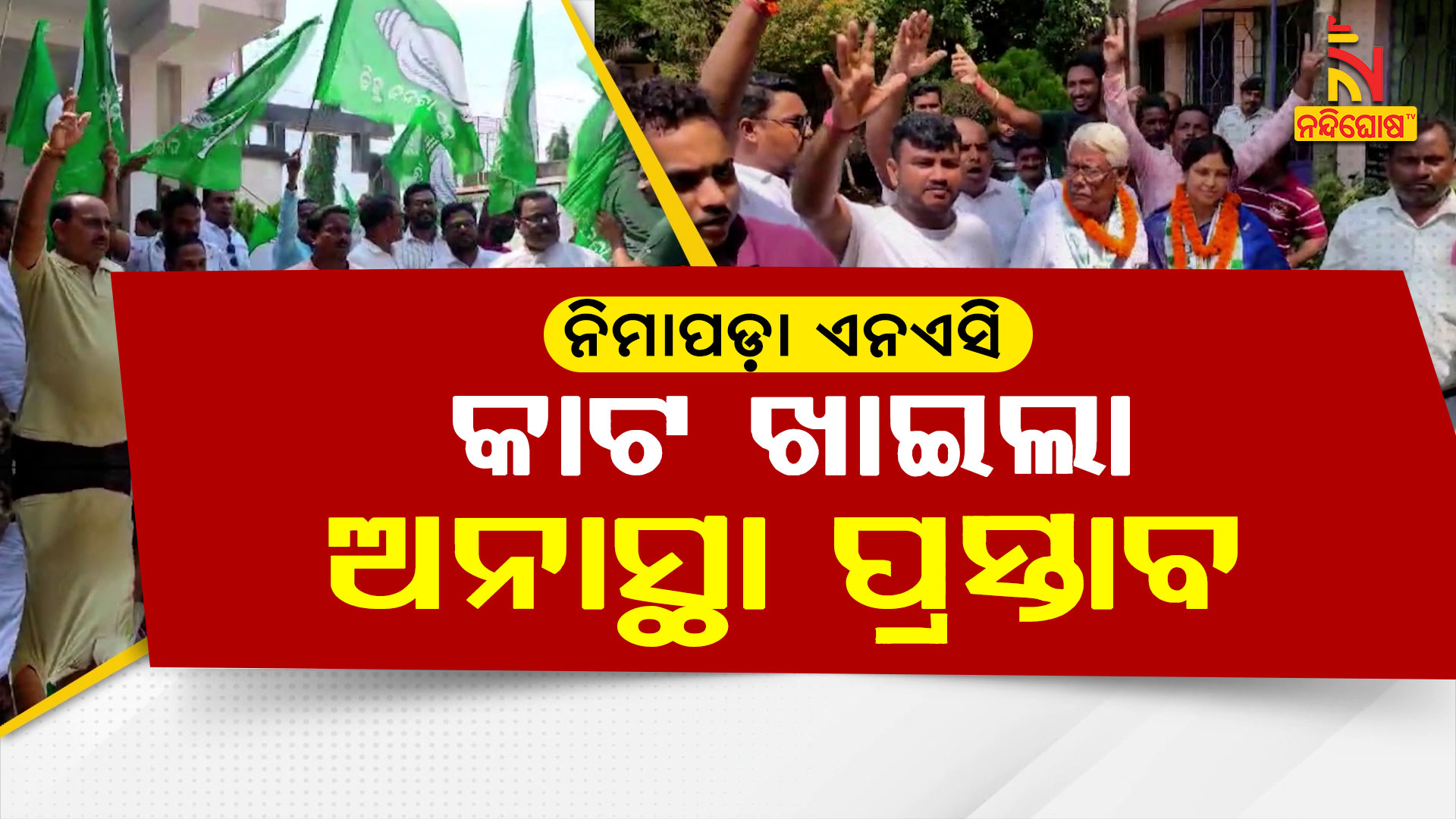 ସୂଚନାଯୋଗ୍ୟ, ନିମାପଡ଼ା ଏନଏସିରେ ମୋଟ କାଉନସିଲରଙ୍କ ସଂଖ୍ୟା ୧୧ ହୋଇଥିବା ବେଳେ ନିୟମ ଦୃଷ୍ଟିରୁ ଅଧ୍ୟକ୍ଷାଙ୍କୁ ଗାଦିଚ୍ୟୁତ କରିବାକୁ ୮ଟି ଭୋଟର ଆବଶ୍ୟକତା ଥିଲା । ଅନାସ୍ଥା ପ୍ରସ୍ତାବ କାଟ ଖାଇବା ପରେ ବିଜେଡି ଶିବିରରେ ଖୁସିର ଲହରୀ ଖେଳିଯାଇଛି । ଦଳୀୟ ପତାକା ଧରି ଏନଏସି ଅଫିସ ମଧ୍ୟରୁ ଶତାଧିକ ବିଜେଡି କର୍ମୀ ରାଲି ମାଧ୍ୟମରେ ସ୍ଲୋଗାନ ଦେଇ ଅଧ୍ୟକ୍ଷାଙ୍କୁ ପାଛୋଟି ନେଇଛନ୍ତି । ସତ୍ଯର ଜୟ ହୋଇଛି । ନିମାପଡ଼ାବାସୀଙ୍କ ଆଶୀର୍ବାଦ ରହିଛି । ଯାହା ଅଧୁରା କାମ ଅଛି ତାକୁ ପୂରଣ କରିବି ବୋଲି କହିଛନ୍ତି ଅଧ୍ଯକ୍ଷା ସସ୍ମିତା ସାହୁ ।