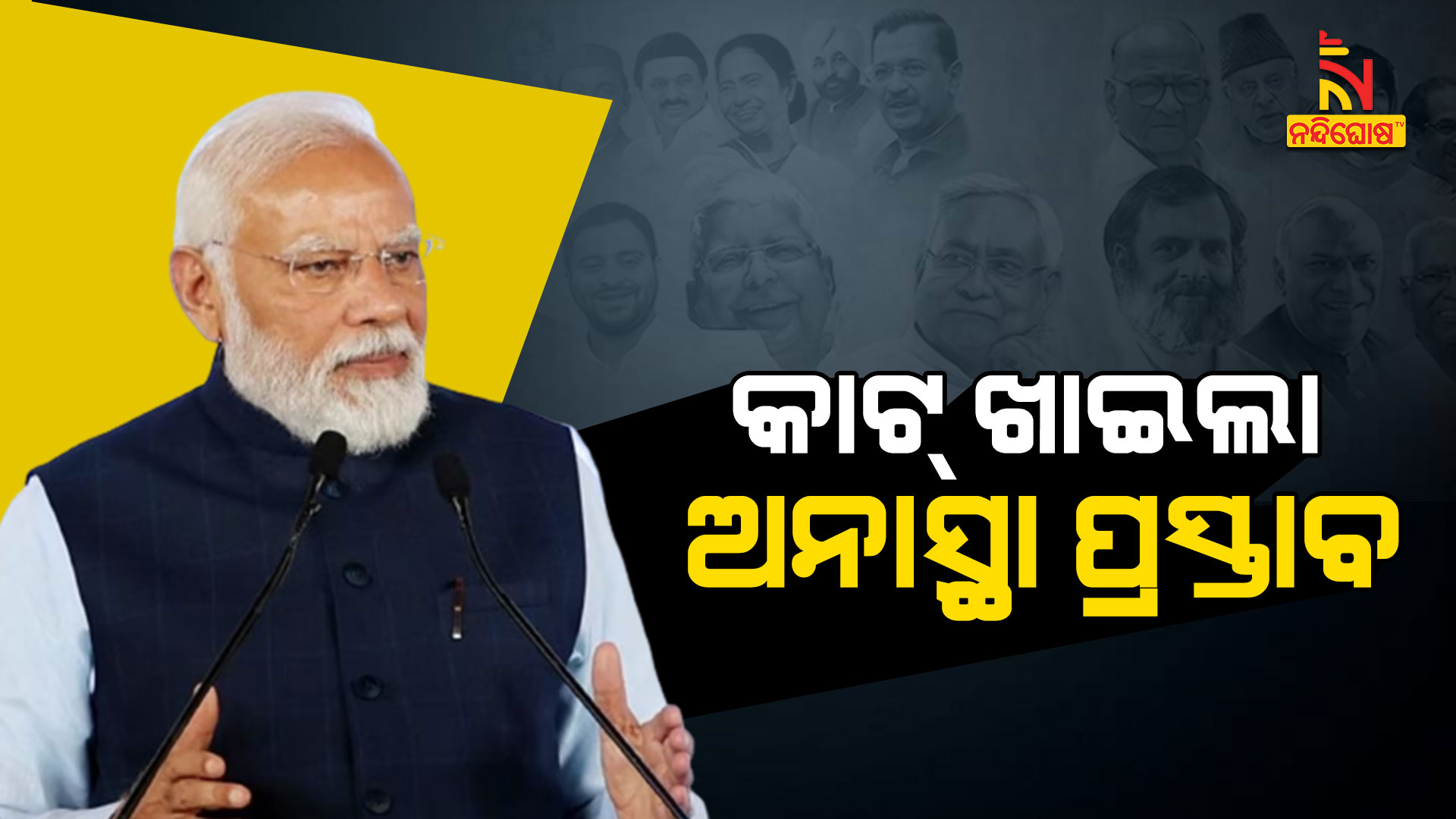 ନୂଆଦିଲ୍ଲୀ : ମୋଦି ସରକାର ବିରୋଧରେ ଆସିଥିବା ଅନାସ୍ଥା ପ୍ରସ୍ତାବ ବାଚନିକ ଭୋଟରେ କାଟ୍ ଖାଇଛି । ମଣିପୁର ହିଂସାକୁ ନେଇ ବିରୋଧୀ ଆଣିଥିବା ଅନାସ୍ଥା ପ୍ରସ୍ତାବ ସଂଖ୍ୟା ଅଭାବରୁ କାଟ୍ ଖାଇଛି । ପ୍ରଧାନମନ୍ତ୍ରୀ ନରେନ୍ଦ୍ର ମୋଦିଙ୍କ ଭାଷଣ ପରେ ଲୋକସଭାରେ ପ୍ରସ୍ତାବ ଉପରେ ଭୋଟ୍ ହୋଇଥିଲା । ଅନ୍ଯପକ୍ଷରେ ଆସନ୍ତାକାଲି ପାଇଁ ଲୋକସଭାକୁ ମୁଲତବୀ ରଖାଯାଇଛି ।