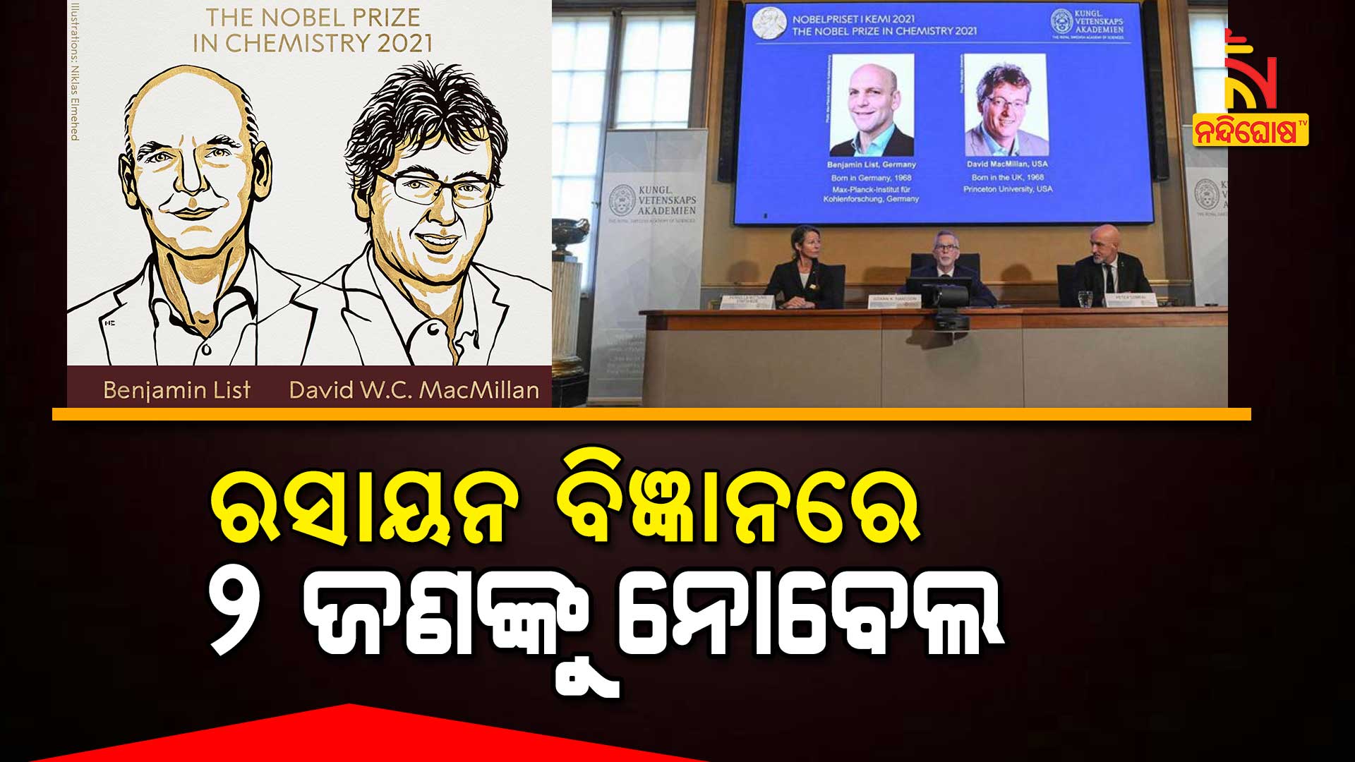 ନୂଆଦିଲ୍ଲୀ: ରସାୟନ ବିଜ୍ଞାନ ପାଇଁ ଘୋଷଣା ହେଲା ନୋବେଲ ପୁରସ୍କାର। ଚଳିତବର୍ଷ ଦୁଇଜଣ ରସାୟନ ବିଜ୍ଞାନୀଙ୍କୁ ମିଳିତ ଭାବେ ପ୍ରଦାନ କରାଯିବ ସମ୍ମାନଜନକ ନୋବେଲ୍ । ବେଞ୍ଜାମିନ୍ ଲିଷ୍ଟ ଓ ଡେଭିଡ ମ୍ୟାକମିଲାନଙ୍କୁ ନୋବେଲ ନୋବଲ୍ ମିଳିବ ।