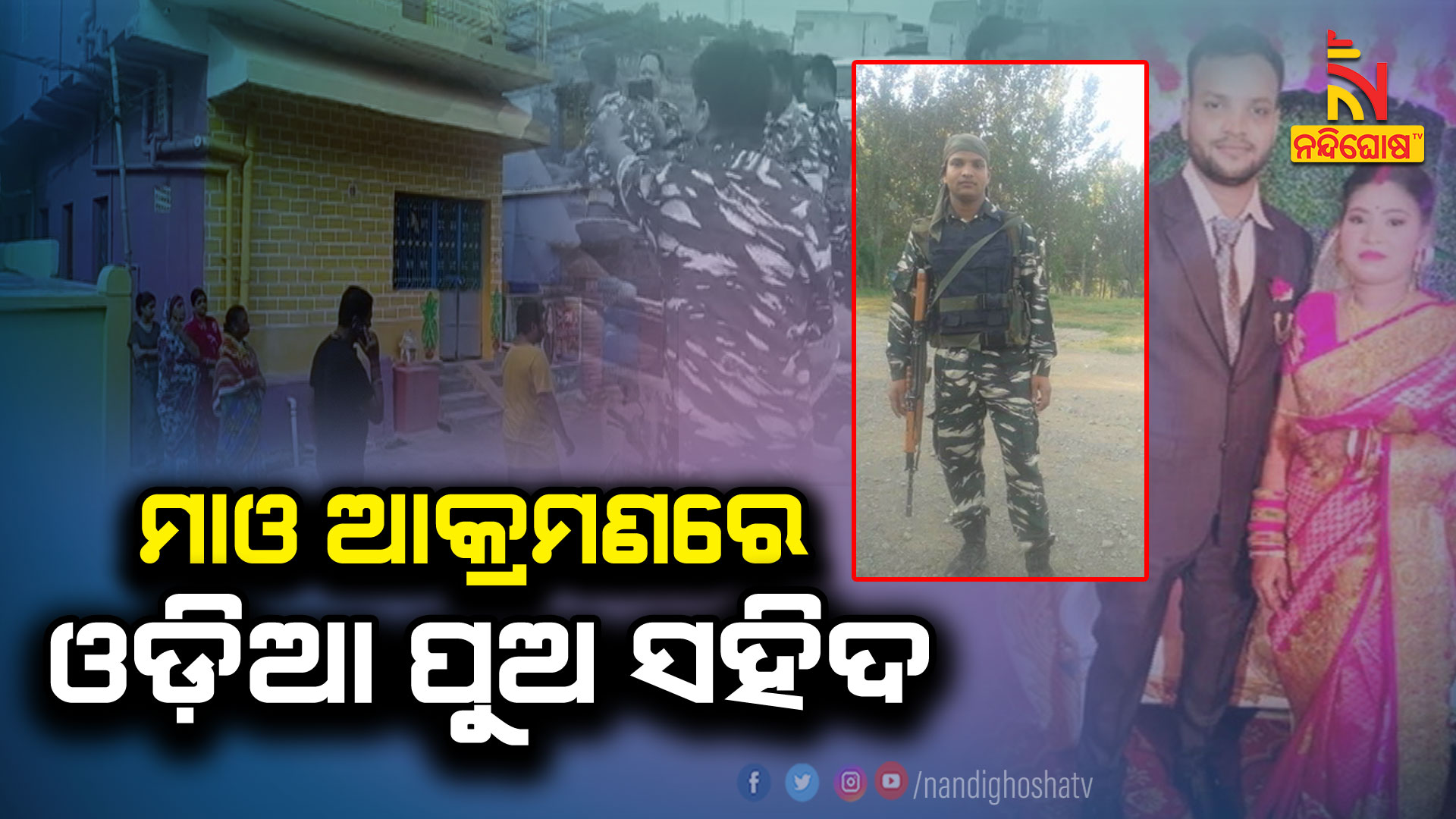 ଆନନ୍ଦପୁର: ମାଓବାଦୀଙ୍କ ଲ୍ୟାଣ୍ଡମାଇନ ବିସ୍ଫୋରଣରେ ଓଡ଼ିଆ ପୁଅ ସୁଶାନ୍ତ ଖୁଣ୍ଟିଆ ସହିଦ । ମୃତ ଯବାନଙ୍କ ଘର କେନ୍ଦୁଝର ଜିଲ୍ଲା ଆନନ୍ଦପୁର ନନ୍ଦିସାହିରେ ହୋଇଥିବା ବେଳେ ସେ CRPF 60 ବାଟାଲିଆନର ଯବାନ ଭାବେ କାର୍ଯ୍ୟରତ ଥିଲେ । ଦୁଇମାସ ତଳେ ସୁଶାନ୍ତଙ୍କ ବିବାହ ହୋଇଥିଲା । ଝାଡଖଣ୍ଡ ପଶ୍ଚିମ ସିଂହଭୂମି କୋଲହନ ଜଙ୍ଗଲରେ ସିଆରପିଏଫ ଯବାନଙ୍କ ଚାଲିଥିଲା କୁମ୍ବିଂ ଅପରେସନ ।