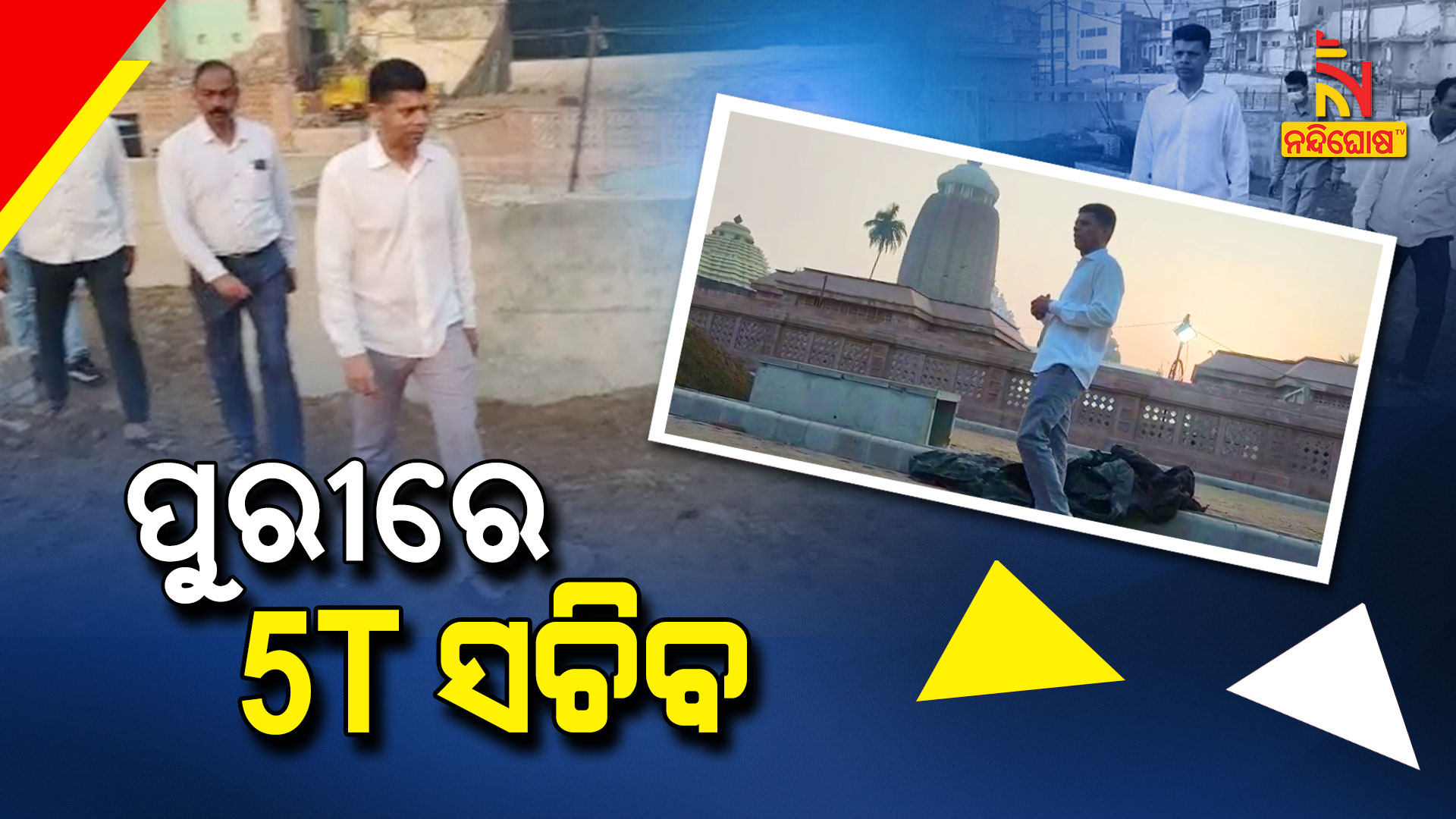 ପୁରୀ: ପୁରୀରେ 5T ସଚିବ ଭି କାର୍ତ୍ତିକେୟନ ପାଣ୍ଡିଆନ । 5T ସଚିବ ଆଜି ପୁରୀ ଗସ୍ତରେ ଆସି ଶ୍ରୀମନ୍ଦିର ପରିକ୍ରମା ପ୍ରକଳ୍ପ କାର୍ଯ୍ୟର ଅନୁଧ୍ୟାନ କରିଛନ୍ତି । ଶ୍ରୀମନ୍ଦିର ଚାରିପାଖ ବୁଲି ଦେଖିବା ସହ ନିର୍ମାଣ ହୋଇଥିବା ସମସ୍ତ କାର୍ଯ୍ୟକୁ ଯାଞ୍ଚ କରିଛନ୍ତି ।