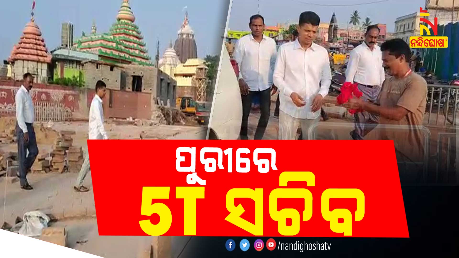 ସ୍ନାନଯାତ୍ରା ପୂର୍ବରୁ ବାକିଥିବା କାର୍ଯ୍ୟ ଶେଷ କରିବା ପାଇଁ ନିର୍ଦ୍ଦେଶ ଦେଇଛନ୍ତି । ଫେରିବା ବାଟରେ ମହାପ୍ରଭୁଙ୍କ ରଥ ନିର୍ମାଣ ସମ୍ପର୍କରେ ମଧ୍ୟ ପଚାରି ବୁଝିଥିଲେ । 5T ସଚିବଙ୍କର ଆଜି ଜନ୍ମଦିନ ହୋଇଥିବାରୁ ଶ୍ରୀମନ୍ଦିର ମୁଖ୍ୟ ପ୍ରଶାସକ 5T ସଚିବଙ୍କୁ ଶ୍ରୀଜିଉଙ୍କ ଲାଗି ଖଣ୍ଡୁଆ ସମେତ ମହାପ୍ରଭୁଙ୍କ ନାକଚଣା ପ୍ରଦାନ କରିଥିଲେ । ସାଧାରଣ ଲୋକ ଓ ସେବାୟତ 5T ସଚିବଙ୍କ ସହିତ ସେଲଫି ନେଇଥିବା ବେଳେ ଶୁଭେଚ୍ଛା ଜଣାଇଥିଲେ।