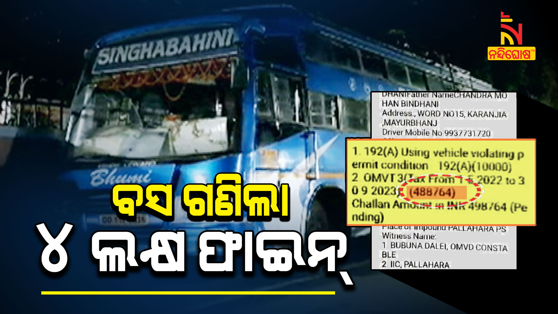 ପରମିଟ ନଥାଇ ଗାଡି ଚଳାଇବା ପାଇଁ ୧୦ ହଜାର ଟଙ୍କା, ଟ୍ୟାକ୍ସ ବାବଦକୁ ବକେୟା ପାଇଁ ୪ ଲକ୍ଷ ୮୮ ହଜାର ୭୬୪ ଟଙ୍କା , ମୋଟ ୪ ଲକ୍ଷ ୯୮ ହଜାର ପରିବହନ ବିଭାଗ ପକ୍ଷରୁ କଟାଯାଇଛି । ବସଟିକୁ ପାଲଲହଡା ଥାନାରେ ଜିମା ଦିଆଯାଇଛି  । ଦୀର୍ଘଦିନରୁ ବସ୍‌ଟି ନିୟମ ଉଲଂଘନ କରି ଆସୁଥିବାବେଳେ ନୂତନ ମୋଟର ଯାନ ଆଇନ ଅନୁଯାୟୀ ଫାଇନ କଟାଯାଇଥିବା ତାଳଚେର ଆରଟିଓ ନିଖିଳ କୁମାର ପଟ୍ଟନାୟକ ସୂଚନା ଦେଇଛନ୍ତି  ।