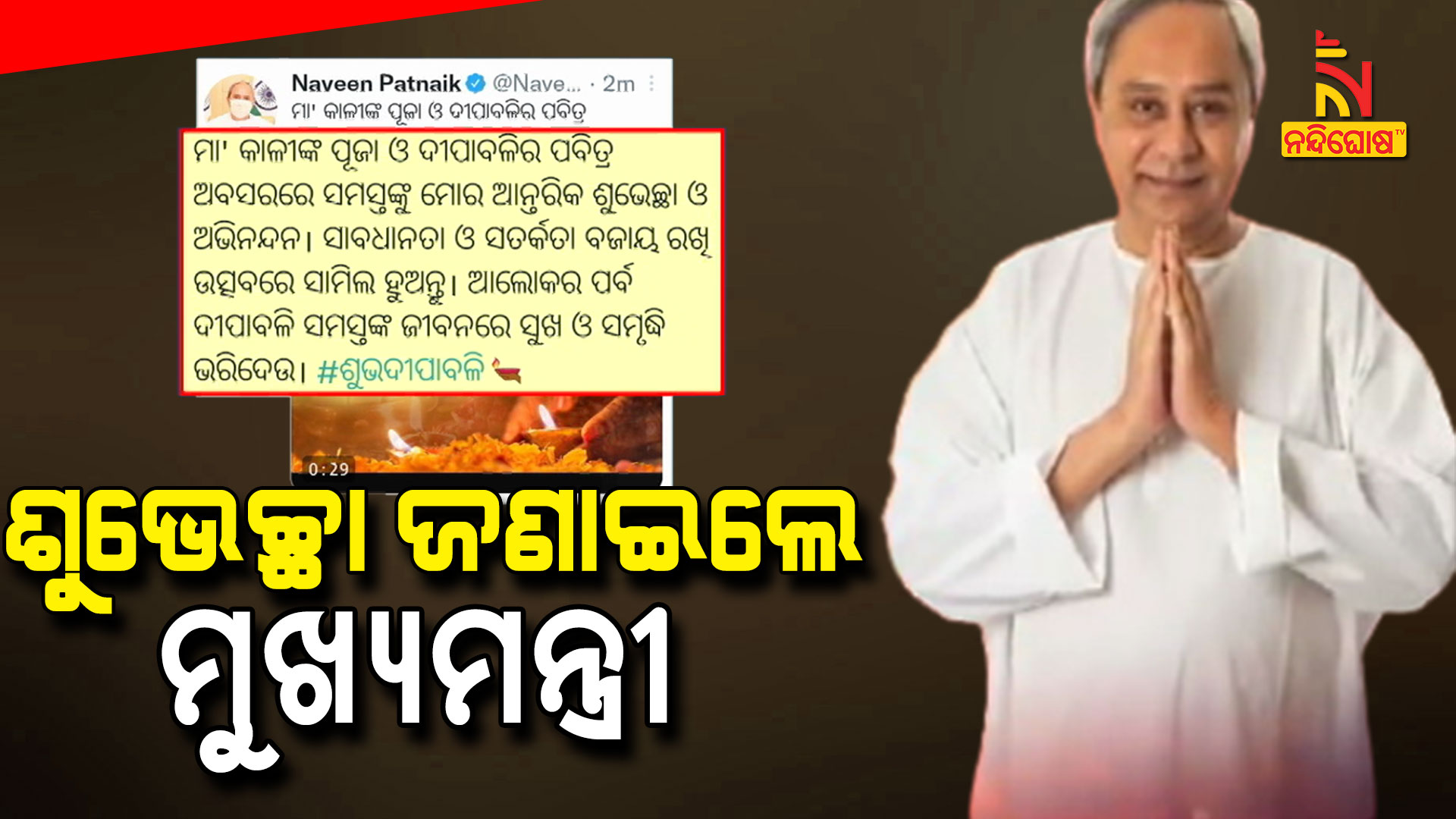 ମୁଖ୍ୟମନ୍ତ୍ରୀ ଟ୍ୱିଟ୍ କରି ଲେଖିଛନ୍ତି, ” ‘ମା’ କାଳୀଙ୍କ ପୂଜା ଓ ଦୀପାବଳିର ପବିତ୍ର ଅବସରରେ ସମସ୍ତଙ୍କୁ ମୋର ଆନ୍ତରିକ ଶୁଭେଚ୍ଛା ଓ ଅଭିନନ୍ଦନ। ସାବଧାନତା ଓ ସତର୍କତା ବଜାୟ ରଖି ଉତ୍ସବରେ ସାମିଲ ହୁଅନ୍ତୁ। ଆଲୋକର ପର୍ବ ଦୀପାବଳି ସମସ୍ତଙ୍କ ଜୀବନରେ ସୁଖ ଓ ସମୃଦ୍ଧି ଭରିଦେଉ। ଶୁଭଦୀପାବଳି । “