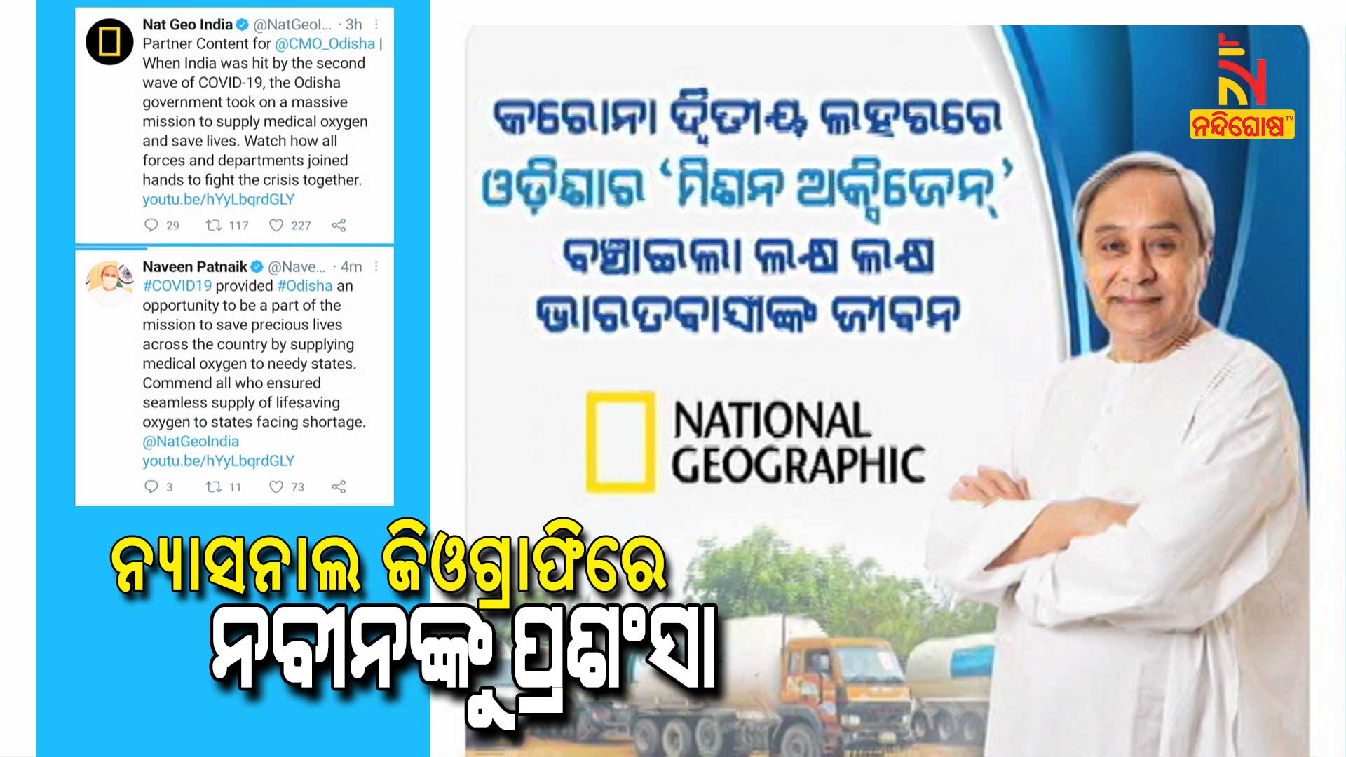 ଭୁବନେଶ୍ୱର: ଅନ୍ତର୍ଜାତୀୟ ଚ୍ୟାନେଲ ନ୍ୟାସନାଲ ଜିଓଗ୍ରାଫିରେ ନବୀନଙ୍କୁ ପ୍ରଶଂସା । ସଂକ୍ରମଣ ସଂକଟରେ ସାରା ଦେଶକୁ ସଂଜୀବନୀ ବାଣ୍ଟିଛି ଓଡ଼ିଶା । ସଂକଟମୋଚକ ସାଜିଛନ୍ତି ମୁଖ୍ୟମନ୍ତ୍ରୀ ନବୀନ ପଟ୍ଟନାୟକ । କରୋନା ଦ୍ବିତୀୟ ଲହରରେ ବିଭିନ୍ନ ରାଜ୍ୟରେ ଅକ୍ସିଜେନ୍ ସଂକଟ ଦେଖା ଦେଇଥିବା ବେଳେ ଓଡ଼ିଶା ସରକାର ନିଶ୍ବାସ ବାଣ୍ଟି ମୂଲ୍ୟବାନ ଜୀବନ ବଞ୍ଚାଇଛନ୍ତି । ଗତ ଦୁଇ ମାସ ମଧ୍ୟରେ ୧୭ରାଜ୍ୟକୁ ୩୧ହଜାର ୨୫୫ ମେଟ୍ରିକ୍ ଟନ୍ ଅକ୍ସିଜେନ୍ ଯୋଗାଇ ଦିଆଯାଇଛି । ଯେଉଁଥିପାଇଁ ଆଜି ଅନ୍ତର୍ଜାତୀୟ ଚ୍ୟାନେଲରେ ଓଡ଼ିଶାର ମୁଖ୍ୟମନ୍ତ୍ରୀଙ୍କୁ ପ୍ରଶଂସା କରାଯାଇଛି ।