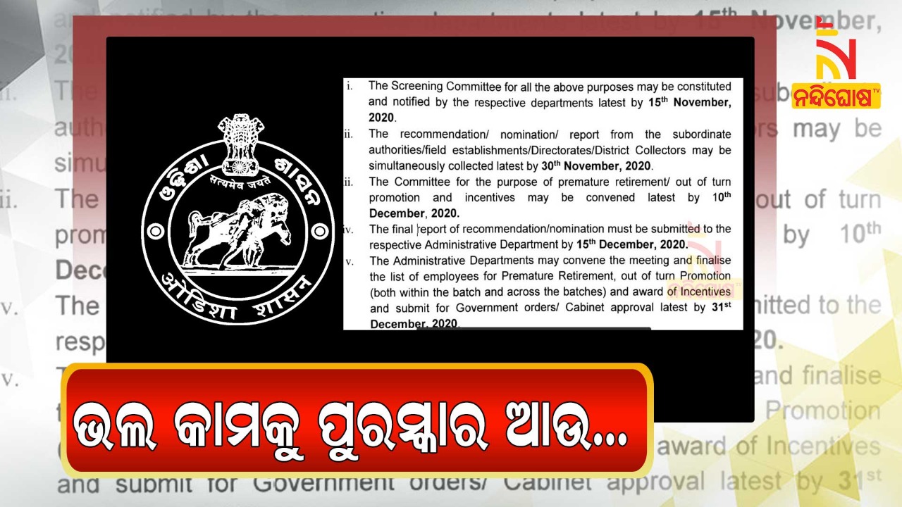 ଏ ସମ୍ପର୍କରେ ବିଭାଗଗୁଡିକୁ ୧୫ ତାରିଖ ସୁଦ୍ଧା ବିଜ୍ଞପ୍ତି ପ୍ରକାଶ କରିବା ପାଇଁ କୁହାଯାଇଛି । ସେହିପରି ୩୦ ନଭେମ୍ବର ସୁଦ୍ଧା କେଉଁ କର୍ମଚାରୀ ଆଗୁଆ ଅବସର ପାଇବେ, କାହାର ପଦୋନ୍ନତି ସ୍ଥଗିତ ରଖାଯିବ । କେଉଁ ମାନଙ୍କୁ ପଦୋନ୍ନତି ତଥା ପ୍ରୋତ୍ସାହନ ଦିଆଯିବ, ତାହାର ତାଲିକା ପ୍ରସ୍ତୁତ କରାଯିବ । ଏ ସମ୍ପର୍କରେ ଏକ ପୂର୍ଣ୍ଣାଙ୍ଗ ରିପୋର୍ଟ ୧୫ ତାରିଖ ସୁଦ୍ଧା ପ୍ରସ୍ତୁତ କରି ରଖାଯିବ । ସମସ୍ତ ଦିଗରୁ ଅନୁଶୀଳନ ପରେ ଆସନ୍ତା ୩୧ ଡିସେମ୍ବର ସୁଦ୍ଧା ଏହାକୁ ବିଧିବଦ୍ଧ ଅନୁମୋଦନ ପାଇଁ ସରକାରଙ୍କୁ ପଠାଯିବ ବୋଲି ଜଣାପଡିଛି ।