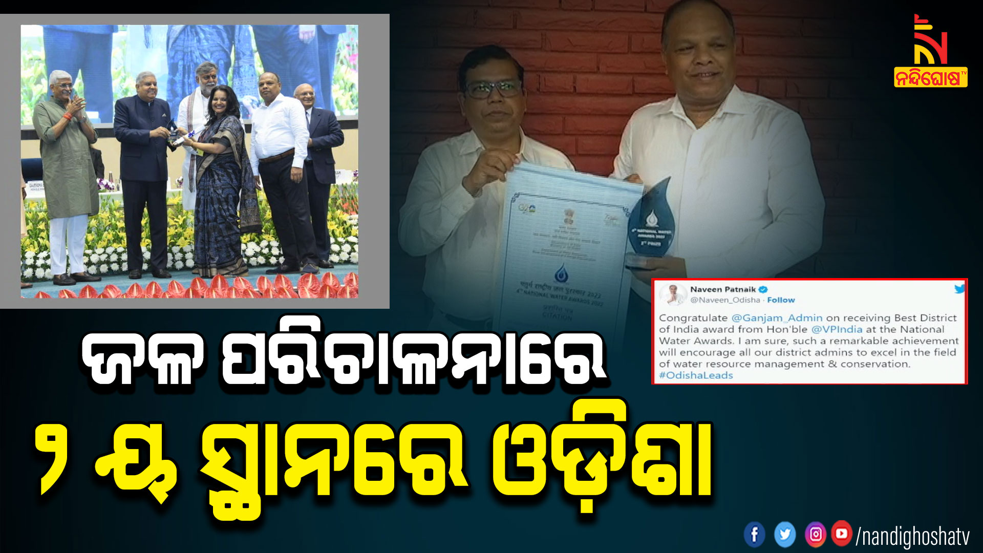 ଗଞ୍ଜାମ ଜିଲ୍ଲାପାଳ ଦିବ୍ୟଜ୍ୟୋତି ପରିଡ଼ା ଉପରାଷ୍ଟ୍ରପତି ଜଗଦୀପ ଧନଖଡ଼ଙ୍କଠାରୁ ପୁରସ୍କାର ଗ୍ରହଣ କରିଥିଲେ । ଜାତୀୟ ଜଳ ପୁରସ୍କାର ପାଇଥିବାରୁ ଗଞ୍ଜାମ ଜିଲ୍ଲା ପ୍ରଶାସନକୁ ଅଭିନନ୍ଦନ ଜଣାଇଛନ୍ତି ମୁଖ୍ୟମନ୍ତ୍ରୀ । ଏହା ଏକ ଉଲ୍ଲେଖନୀୟ ସଫଳତା, ଗଞ୍ଜାମ ଜିଲ୍ଲାର ଏହି ସଫଳତା ସବୁ ଜିଲ୍ଲା ପ୍ରଶାସନକୁ ଜଳ ସମ୍ବଳ ପରିଚାଳନା ଓ ସଂରକ୍ଷଣରେ ଉତ୍କର୍ଷତା ପାଇଁ ଉତ୍ସାହିତ କରିବ ବୋଲି ମୁଖ୍ୟମନ୍ତ୍ରୀ କହିଛନ୍ତି । ୩.୨ ଲକ୍ଷ ହେକ୍ଟର ଜମିରେ ଅତିରିକ୍ତ ଜଳସେଚନ ସୁବିଧା ସୃଷ୍ଟି କରାଯାଇ ୪ ଲକ୍ଷରୁ ଅଧିକ ଚାଷୀଙ୍କୁ ଜଳ ସୁରକ୍ଷା ଯୋଗାଇବା କ୍ଷେତ୍ରରେ ଉଲ୍ଲେଖନୀୟ କାମ ଆଜି ରାଜ୍ୟକୁ ଦେଇଛି ସଫଳତା ।