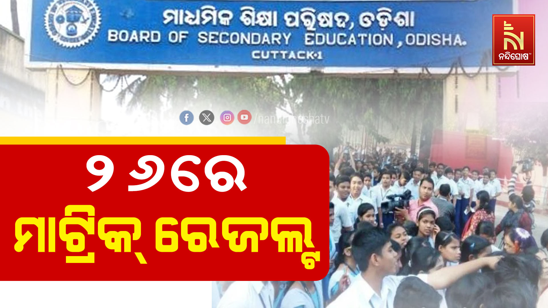 ୨୬ ତାରିଖରେ ମାଟ୍ରିକ୍ ରେଜଲ୍ଟ । ରବିବାର ଦିନ ୧୦ଟା ୩୦ରେ ଫଳାଫଳ ଘୋଷଣା । ଏକଘଣ୍ଟା ମଧ୍ଯରେ ୱେବସାଇଡିରେ ଉପଲବ୍ଧ ହେବ ଫଳ । ଏନେଇ ସୂଚନା ଦେଇଛନ୍ତି ବୋର୍ଡ ସଭାପତି । ପ୍ରଥମ ଥର ପାଇଁ ରେଜଲ୍ଟ ଘୋଷଣାର ୬ ଘଣ୍ଟା ମଧ୍ଯରେ ଅନଲାଇନ ଓ ୱାଟ୍ସଅପରେ ଡିଜିଟାଲ ମାଟ୍ରିକ ପ୍ରମାଣପାତ୍ର ପାଇପାରିବେ ଛାତ୍ରଛାତ୍ରୀ । ଫଳ ପ୍ରକାଶନର ଏକ ଘଣ୍ଟା ମଧ୍ଯରେ www.bscodisha.ac.In ସାଇଡରେ ଉପଲବ୍ଧ ହେବ ରେଜଲ୍ଟ । ଇଣ୍ଟରନେଟ୍ ସମସ୍ୟା ଥିବା ଅଞ୍ଚଳର OR-10-ରୋଲ ନାମ୍ବର ଲେଖି ୫୬୭୬୭୫୦ କୁ ଏସଏମଏସ କଲେ ରେଜଲ୍ଟ ମିଳିପାରିବ । ରି-ଚେକିଙ୍ଗ ପାଇଁ ମେ ୨୯ରୁ ଜୁନ ୧୨ ପର୍ଯ୍ୟନ୍ତ ୧୫ ଦିନ ସମୟ ଦିଆଯାଇଛି । ବିଦ୍ୟାର୍ଥୀଙ୍କ ପରୀକ୍ଷା ଫଳ ଜନିତ ସମସ୍ତ ସମସ୍ୟାର ସମାଧାନ ପାଇଁ କାଉନସିଲରଙ୍କୁ ନେଇ ଖୋଲାଯାଇଛି କଣ୍ଟ୍ରୋଲ ରୁମ ।