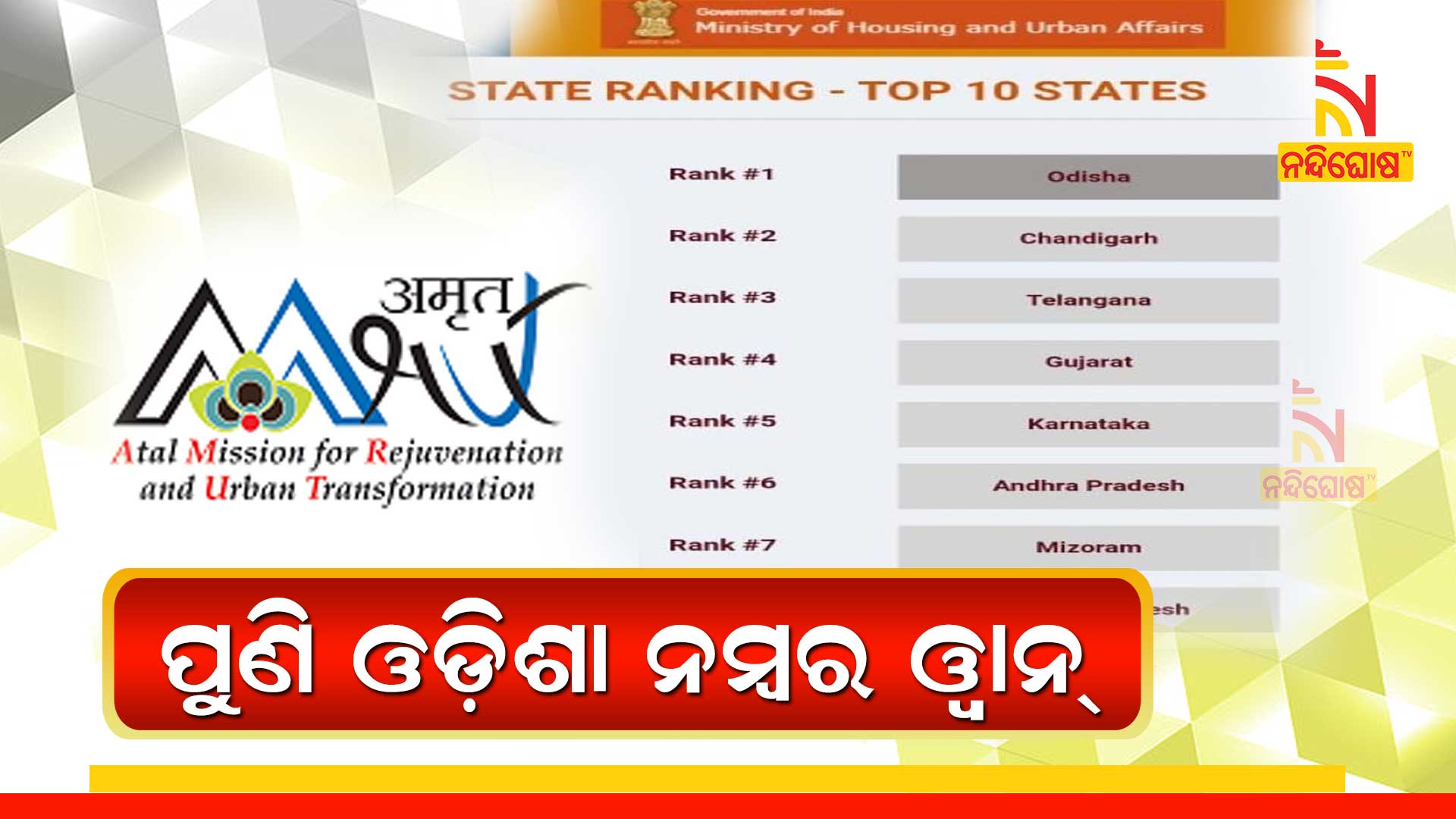 ସହରାଞ୍ଚଳ ଭିତ୍ତିଭୂମି ବିକାଶ, ସ୍ୱଚ୍ଛତା, ସ୍ମାର୍ଟସିଟି ଗଠନରେ କ୍ଷେତ୍ରରେ ସଫଳତା ପାଇଥିବା ଶ୍ରେଷ୍ଠ ୧୦ଟି ରାଜ୍ୟର ନାଁ ପ୍ରକାଶ କରାଯାଇିଛି । ଏଥିରେ ସବୁଠୁ ଆଗରେ ଓଡ଼ିଶା ଥିବା ବେଳେ ଦ୍ୱିତୀୟ ସ୍ଥାନରେରେ ରହିଛି ଚଣ୍ଡିଗଡ଼ ଏବଂ ତୃତୀୟରେ ରହିଛି ତେଲେଙ୍ଗାନା ରାଜ୍ୟ । ରାଙ୍କ ଅନୁସାରେ ୪ର୍ଥରୁ ୧୦ମ ମଧ୍ୟରେ ଯଥାକ୍ରମେ ଗୁଜୁରାଟ, କର୍ଣ୍ଣାଟକ, ଆନ୍ଧ୍ରପ୍ରଦେଶ, ମିଜୋରାମ, ମଧ୍ୟପ୍ରଦେଶ, ଛତିଶଗଡ଼, ଆଣ୍ଡାମାନ ଓ ନିକୋବର ରହିଛନ୍ତି ।