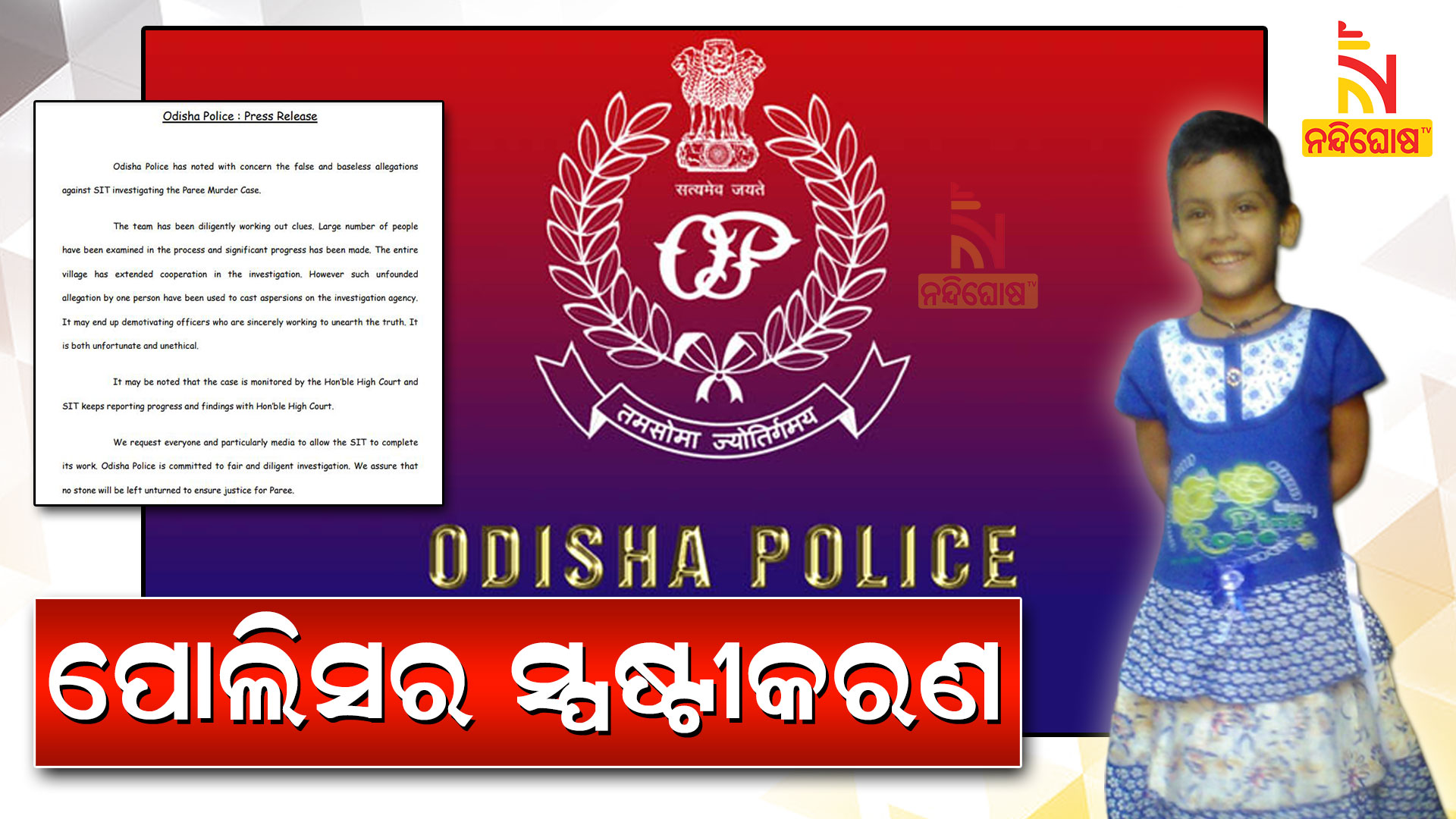 ଏହାଦ୍ବାରା ତଦନ୍ତକାରୀ ଅଧିକାରୀ ହତୋତ୍ସାହିତ ହେବେ । ଏହି ଘଟଣାର ତଦନ୍ତ ହାଇକୋର୍ଟ ମନିଟର କରୁଛନ୍ତି । SIT ହାଇକୋର୍ଟଙ୍କୁ ନିୟମିତ ତଦନ୍ତର ଅଗ୍ରଗତି ନେଇ ଜଣାଉଛନ୍ତି । SITକୁ ନିଜ ଦାୟିତ୍ୱ ତୁଲାଇବାରେ ଗଣମାଧ୍ୟମ ବାଧା ସୃଷ୍ଟି ନକରୁ । ଓଡ଼ିଶା ପୋଲିସ ସ୍ବଚ୍ଛ ତଦନ୍ତ ପାଇଁ ପ୍ରତିଶ୍ରୁତିବଦ୍ଧ । ପରୀକୁ ନିଶ୍ଚିତ ନ୍ୟାୟ ମିଳିବ ବୋଲି ଓଡ଼ିଶା ପୋଲିସ କହିବା ସହିତ ନ୍ୟାୟ ରାସ୍ତାରେ ବାଧାଦେଲେ କାହାରିକୁ ଛଡ଼ାଯିବନି ବୋଲି କହିଛି ।