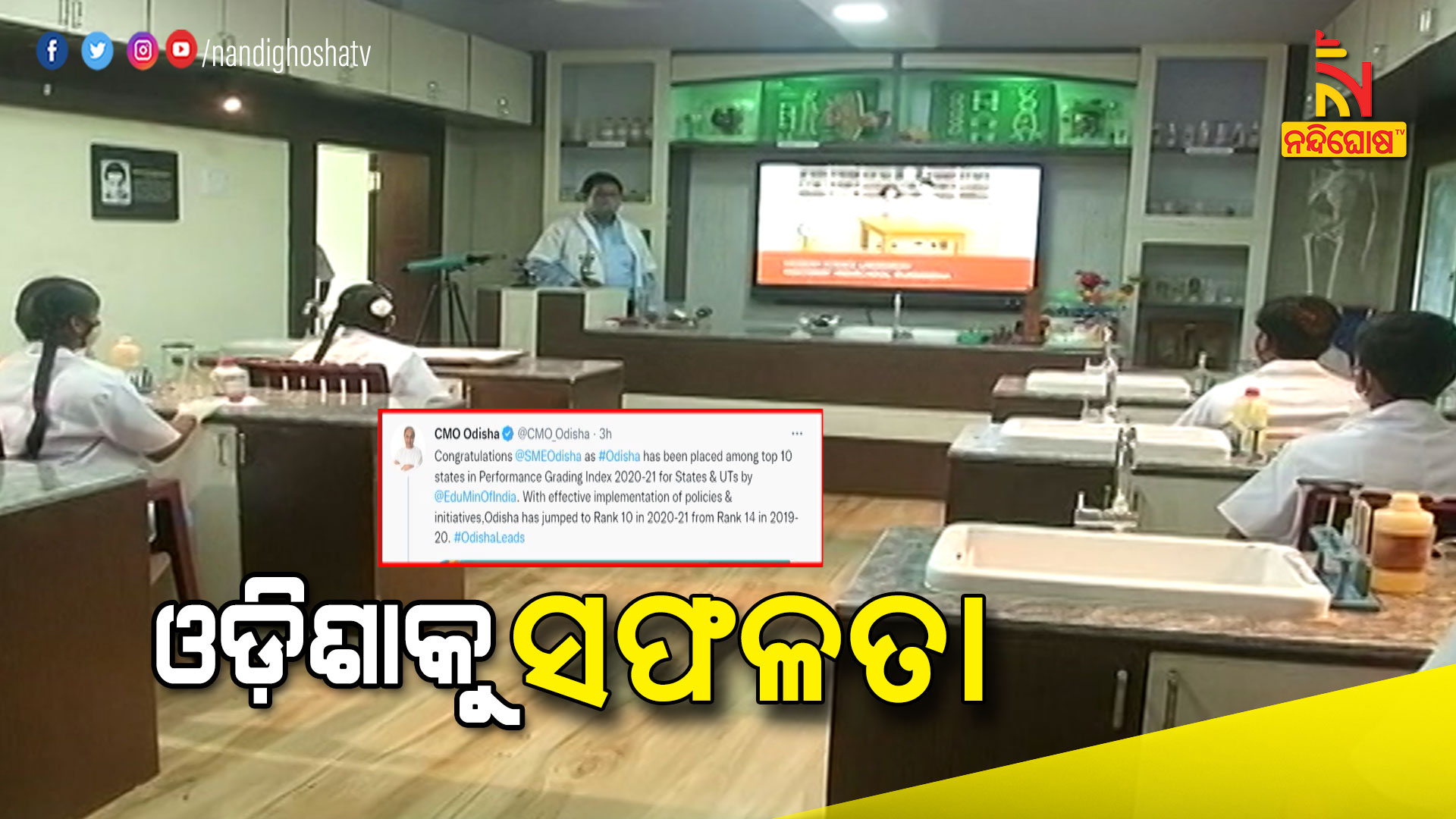 ଭୁବନେଶ୍ୱର: ଶିକ୍ଷା କ୍ଷେତ୍ରରେ ଓଡ଼ିଶାକୁ ସଫଳତା । ସ୍କୁଲ ଶିକ୍ଷାରେ ଦେଶରେ ୧୦ ରାଜ୍ୟ ମଧ୍ୟରେ ସ୍ଥାନ ପାଇଲା ଓଡ଼ିଶା । କେନ୍ଦ୍ର ସରକାରଙ୍କ ଅଧିନସ୍ଥ ଶିକ୍ଷା ବିଭାଗ ପକ୍ଷରୁ ପ୍ରକାଶିତ ପିଜିଆଇ ୨୦୨୦-୨୧ ରିପୋର୍ଟରେ ଶ୍ରେଷ୍ଠ ୧୦ ରାଜ୍ୟ ମଧ୍ୟରେ ରହିଛି ଓଡ଼ିଶା । ଟ୍ବିଟ୍ କରି ଶୁଭେଚ୍ଛା ଜଣାଇଛନ୍ତି ମୁଖ୍ୟମନ୍ତ୍ରୀ ନବୀନ ପଟ୍ଟନାୟକ । ଗୁଣାତ୍ମକ ଶିକ୍ଷା, ସୁଦୃଢ ଭିତ୍ତିଭୂମି, ବିଦ୍ୟାଳୟ ପ୍ରବେଶ ସୁବିଧା, ଛାତ୍ରଛାତ୍ରୀଙ୍କ ମୂଲ୍ୟାୟନ ଓ ବିଦ୍ୟାଳୟ ପରିଚାଳନା ପରି ୫ଟି ବିଷୟ ଆଧାରରେ ଏହି ମୂଲ୍ୟାୟନ କରାଯାଇଥିଲା । ୨୦୧୯-୨୦ ଶିକ୍ଷାବର୍ଷ ତୁଳନାରେ ୨୦୨୦-୨୧ ଶିକ୍ଷାବର୍ଷରେ ଓଡ଼ିଶା ସମସ୍ତ ୫ଟି ମାଟ୍ରିକ୍ସରେ ଭଲ ପ୍ରଦର୍ଶନ କରିବା ସହ ଦେଶରେ ଆଗଧାଡ଼ିର ରାଜ୍ୟମାନଙ୍କ ମଧ୍ୟରେ ସ୍ଥିତିକୁ ସୁଦୃଢ଼ କରିଛି ।
