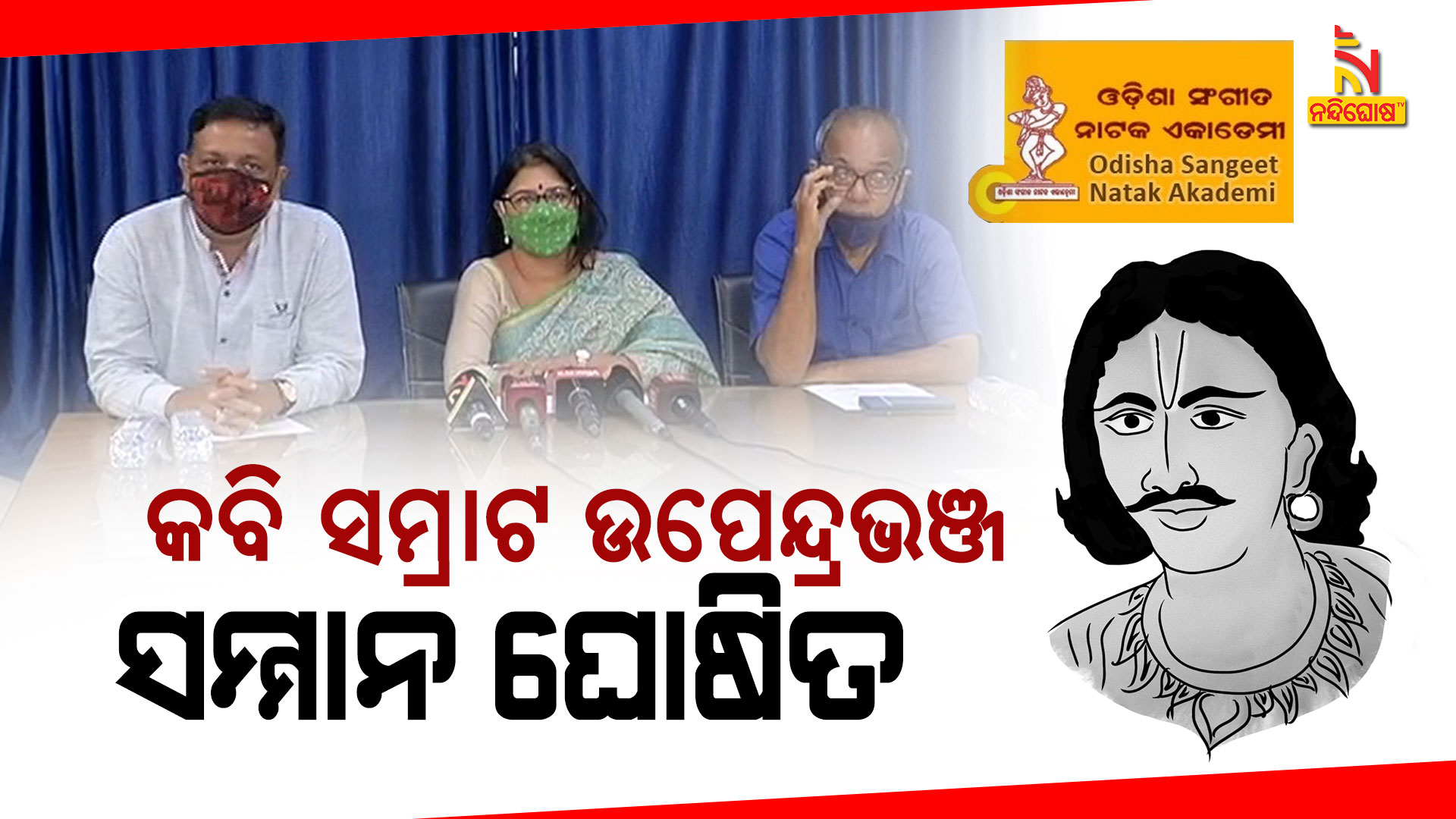 ଭୁବନେଶ୍ୱର: ୨୦୧୯-୨୦ ପାଇଁ କବି ସମ୍ରାଟ ଉପେନ୍ଦ୍ରଭଞ୍ଜ ସମ୍ମାନ ଓ ଏକାଡେମୀ ପୁରସ୍କାର ପାଇଁ ମନୋନୀତ  କଳାକାରଙ୍କ ନାଁ ଘୋଷଣା ହୋଇଛି । ଓଡ଼ିଶା ସଙ୍ଗୀତ ନାଟକ ଏକାଡେମୀର ସର୍ବୋଚ୍ଚ ସମ୍ମାନ ଆସନ୍ତା ଅଗଷ୍ଟ ୩୦ରେ ପ୍ରଦାନ କରାଯିବ । ଏହି ସମ୍ମାନ ୨୦୧୯ ମସିିହା ପାଇଁ ଘୋଷଣା କରାଯାଇଛି  ।