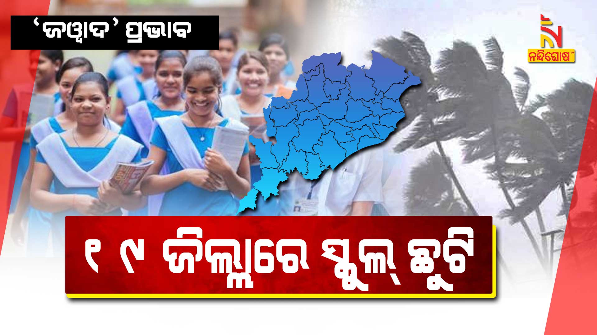 ଭୁବନେଶ୍ୱର: ସମ୍ଭାବ୍ୟ ବାତ୍ୟାକୁ ଦୃଷ୍ଟିରେ ରଖି ଗଣଶିକ୍ଷା ବିଭାଗର ବଡ଼ ନିଷ୍ପତି  ।  ୧୯ଟି ଜିଲ୍ଲାରେ ସ୍କୁଲ ଛୁଟି ରଖିବା ନେଇ ସୂଚନା ଦେଲା ବିଭାଗ  । ବାତ୍ୟା ଜୱାଦ ଦ୍ୱାରା ପ୍ରଭାବିତ ହେବାକୁ ଥିବା ଜିଲ୍ଲା ଗୁଡ଼ିକରେ ସ୍କୁଲ ବନ୍ଦ ରହିବ  । ଏହି ସମୟରେ କୌଣସି ଛାତ୍ରଛାତ୍ରୀ ବିଦ୍ୟାଳୟ ନଯିବାକୁ ନିର୍ଦ୍ଦେଶ ଜାରି କରିଛନ୍ତି ଗଣଶିକ୍ଷା ବିଭାଗ  ।