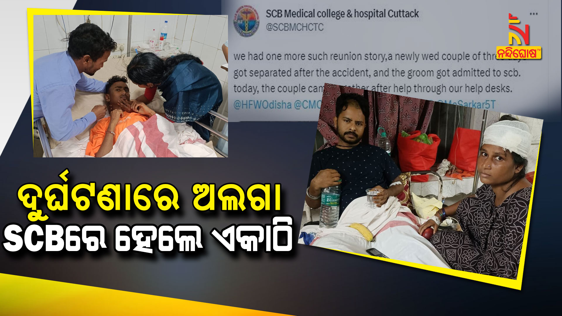 କଟକ: ବାହାନଗା ଟ୍ରେନ ଟ୍ରାଜେଡି । ଦୁର୍ଘଟଣା ପରେ କଟକ ଏସସିବିରେ ରିୟୁନିଅନ । ତିନି ଦିନ ପରେ ଏସସିବି ହସ୍ପିଟାଲରେ ଏକାଠି ହେଲେ ନବ ଦମ୍ପତି । ଟ୍ରେନ ଦୁର୍ଘଟଣା ପରେ ଦମ୍ପତି ଅଲଗା ହୋଇଯାଇଥିଲେ । କଟକର ଏସସିବି ମେଡିକାଲରେ ସ୍ବାମୀଙ୍କ ଚିକିତ୍ସା ଚାଲିଥିବା ବେଳେ ହେଲ୍ପ ଡେସ୍କ ସୂଚନା ଆଧାରରେ ସ୍ବାମୀଙ୍କ ପାଖରେ ପହଞ୍ଚିଛନ୍ତି ସ୍ତ୍ରୀ । ଏବେ ହସ୍ପିଟାଲରେ ଦୁହିଁଙ୍କ ଚିକିତ୍ସା ଚାଲିଛି ।