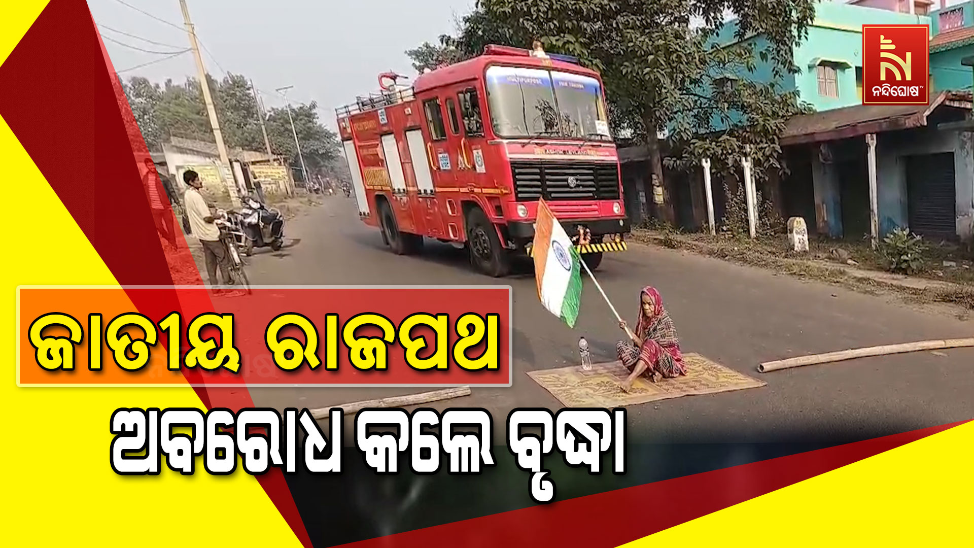ହାତରେ ଜାତୀୟ ପତାକା ଧରି ରାସ୍ତା ଅବରୋଧ କଲେ ବୃଦ୍ଧା