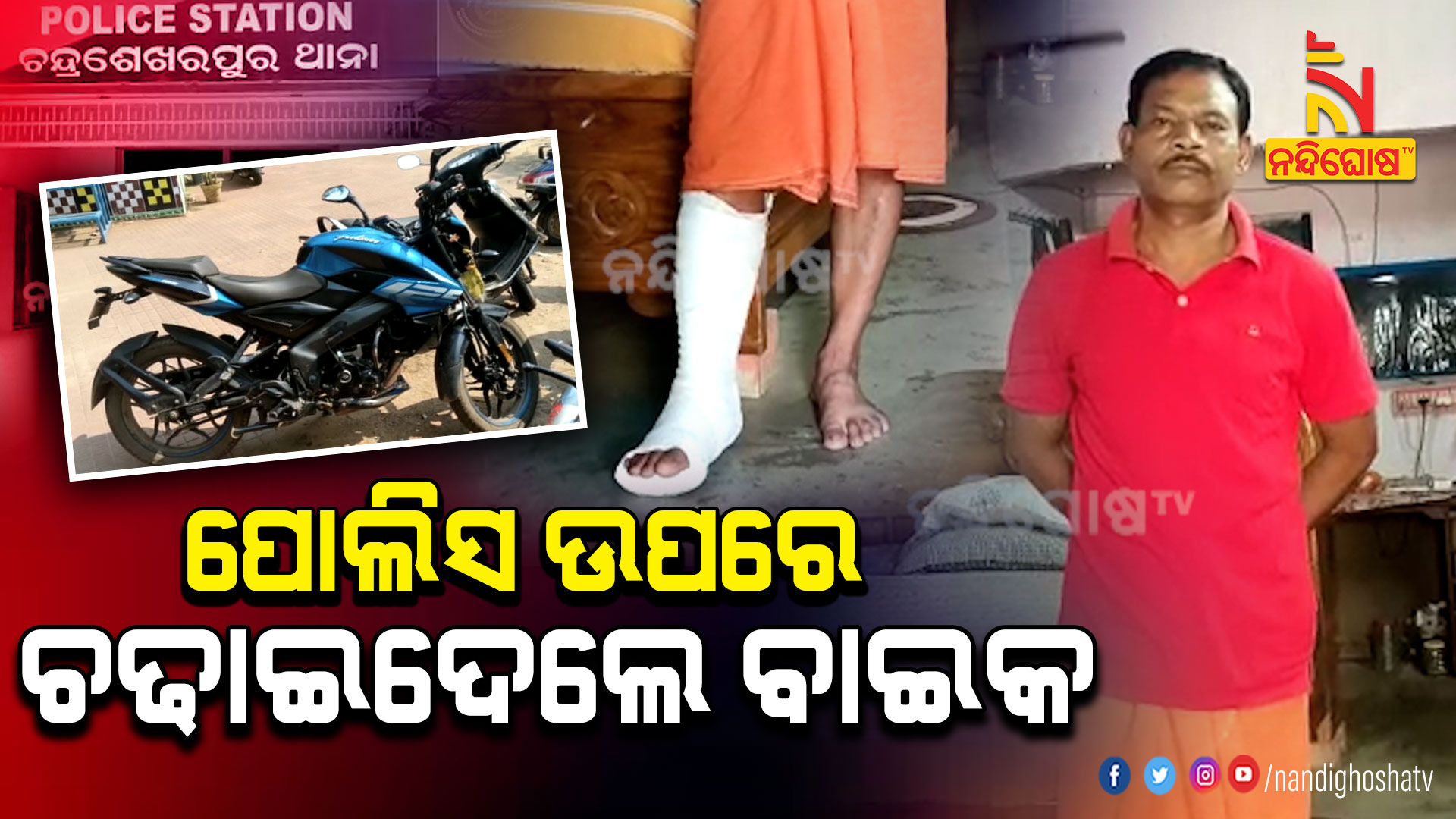 ଗତକାଲି ଇନଫୋସିଟି ଛକରେ ହେଲମେଟ୍ ଚେକିଂ ବେଳେ ଦୁଇଜଣ ଛାତ୍ର ବିନା ହେଲମେଟ ବାଇକ୍ ନେଇ ଆସୁଥିଲେ । ପୋଲିସ କର୍ମଚାରୀ ଗାଡି ସାଇଡ କରିବାକୁ କହିବାରୁ ଧକ୍କାମାରି ଖସି ପଳାଇଥିଲେ । ସତୀଶଙ୍କ ଡାହାଣ ଗୋଡ଼ ଭାଙ୍ଗି ଯାଇଛି । ଦୁଇ ଜଣଙ୍କୁ ଅଟକ ରଖିବା ସହ ବାଇକ ଜବତ କରିଛି ଚନ୍ଦ୍ରଶେଖରପୁର ଥାନା ପୋଲିସ ।