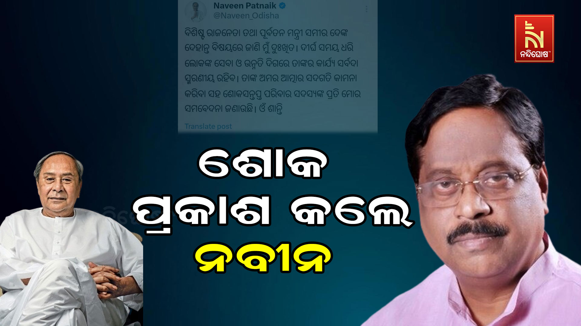ସମୀର ଦେଙ୍କ ପରଲୋକରେ ବିରୋଧୀ ଦଳ ନେତା ନବୀନ ପଟ୍ଟନାୟକଙ୍କ ଶୋକ