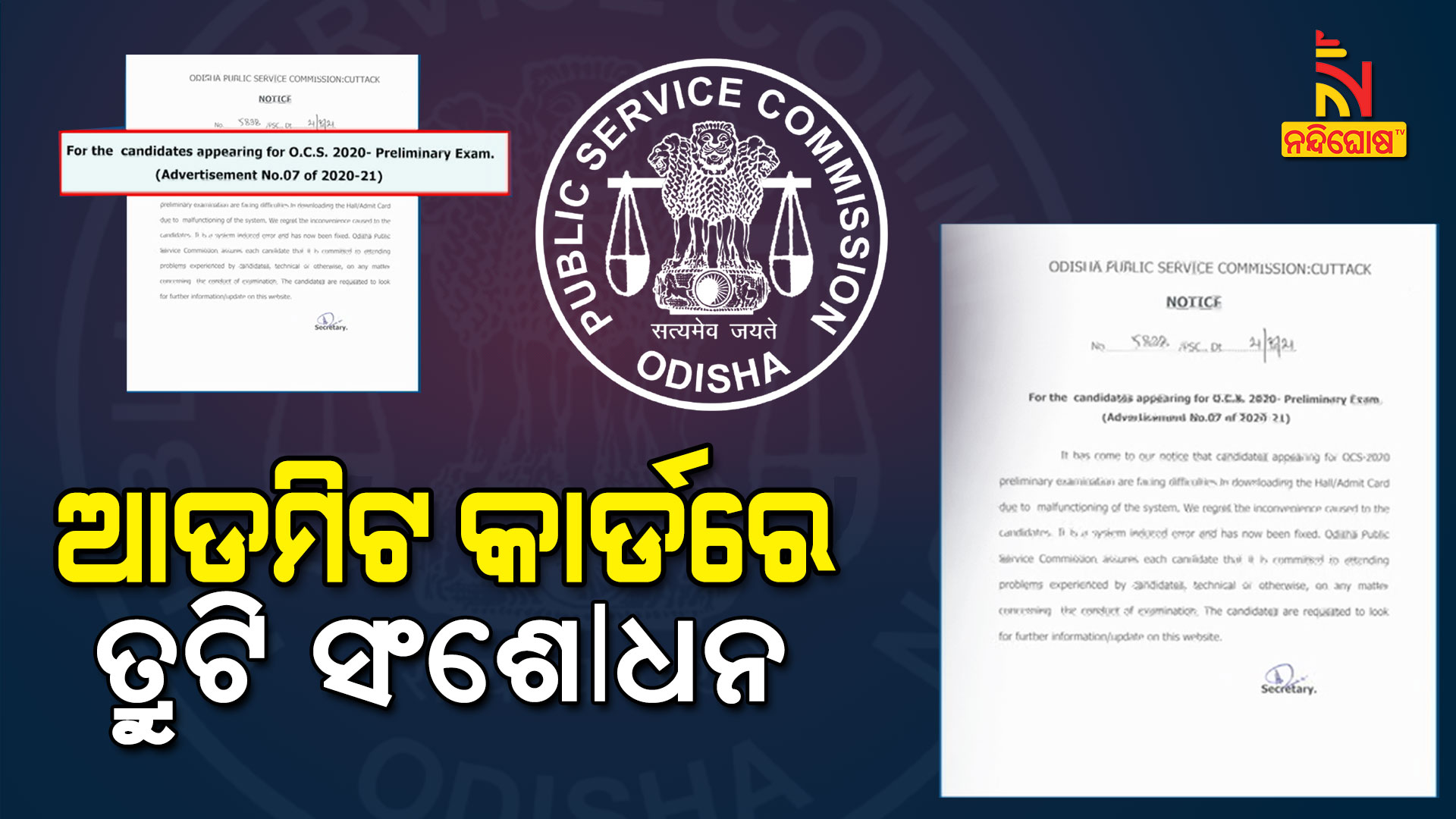 ଛାତ୍ରଛାତ୍ରୀ ଅସନ୍ତୋଷ ପ୍ରକାଶ କରିବା ପରେ ଓପିଏସସି ନଜରକୁ ଏହି ତ୍ରୁଟି ଆସିଥିଲା । ପରେ ଏହା ଏକ ଟେକନିକାଲ ଏରର ଏବଂ ତ୍ରୁଟି ସୁଧାର କରାଯାଇଥିବା ପ୍ରେସ ରିଲିଜ ଜରିଆରେ ସୂଚନା ଦେଇଛି ଓପିଏସସି । ଯେଉଁ ସମସ୍ତ ଆଡମିଟ୍ କାର୍ଡରେ ତାରିଖ ଏବଂ ପରୀକ୍ଷା କେନ୍ଦ୍ରର ନାମ ଉଲ୍ଲେଖ ନଥିଲା । ପରବର୍ତ୍ତୀ ସମୟରେ ଏହିସବୁ ତ୍ରୁଟିକୁ ସୁଧାରିବା ନେଇ ଜଣାଇଛି ଓପିଏସସି ।