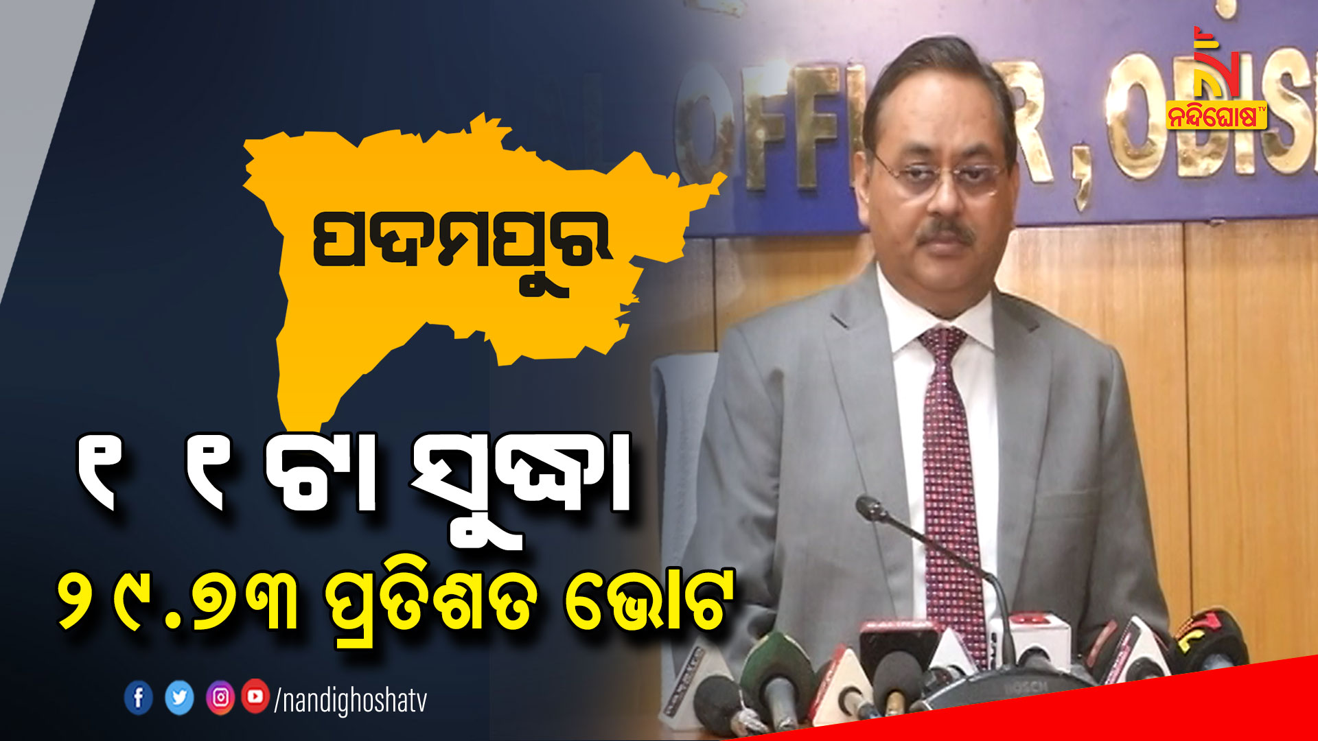 ଭୁବନେଶ୍ବର: ଶାନ୍ତିଶୃଙ୍ଖଳାର ସହ ଚାଲିଛି ପଦମପୁର ଉପନିର୍ବାଚନ ପାଇଁ ମତଦାନ । ଦିନ ୧୧ଟା ସୁଦ୍ଧା ହୋଇଛି ୨୯.୭୩ ପ୍ରତିଶତ ମତଦାନ । ସୂଚନା ଦେଲେ ରାଜ୍ୟ ମୁଖ୍ୟ ନିର୍ବାଚନ ଅଧିକାରୀ ସୁଶିଲ କୁମାର ଲୋହାନି ।
