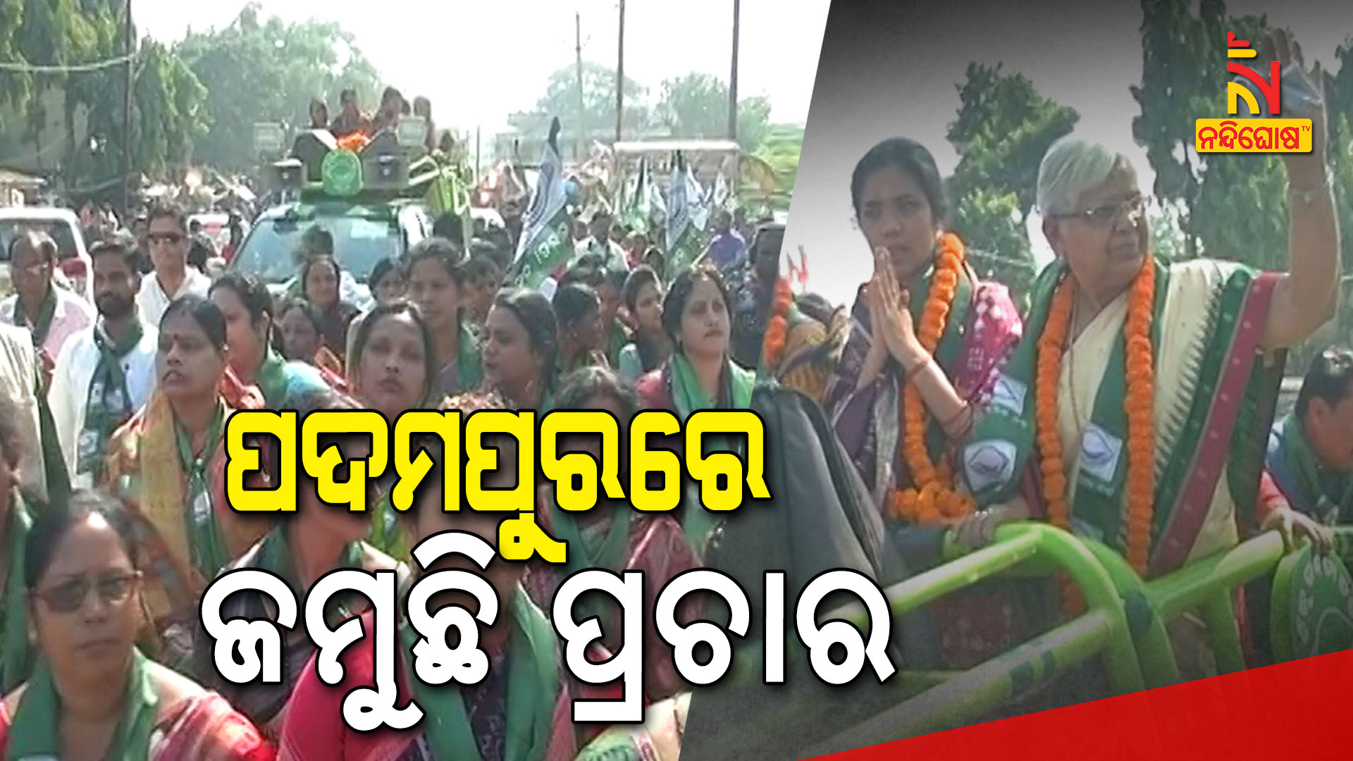 ପଦମପୁର: ସମୟ ପାଖଉଛି, ଟେନସନ ବଢୁଛି । ପଦମପୁର ଉପନିର୍ବାଚନ ପାଇଁ ଜୋରଦାର ପ୍ରଚାର କରୁଛନ୍ତି ୩ ପ୍ରମୁଖ ଦଳଙ୍କ ପ୍ରାର୍ଥୀ । ଘରକୁ ଘର ବୁଲି ଭୋଟ ହାତେଇବାକୁ କସରତ କରୁଛନ୍ତି ସବୁ ଦଳ । ବିଭିନ୍ନ ସ୍ଥାନରେ ବିରାଟ ସମାବେଶ କରି ଲୋକଙ୍କ ଜନ ସମର୍ଥନ ବୃଦ୍ଧି କରୁଛି ବିଜେଡି । ପ୍ରତି ଗାଁରେ ସମସ୍ତଙ୍କ ଘରକୁ ଯାଇ ଆଶୀର୍ବାଦ ମାଗୁଛନ୍ତି ବିଜେଡି ପ୍ରାର୍ଥୀ ବର୍ଷା ସିଂ ବରିହା ।