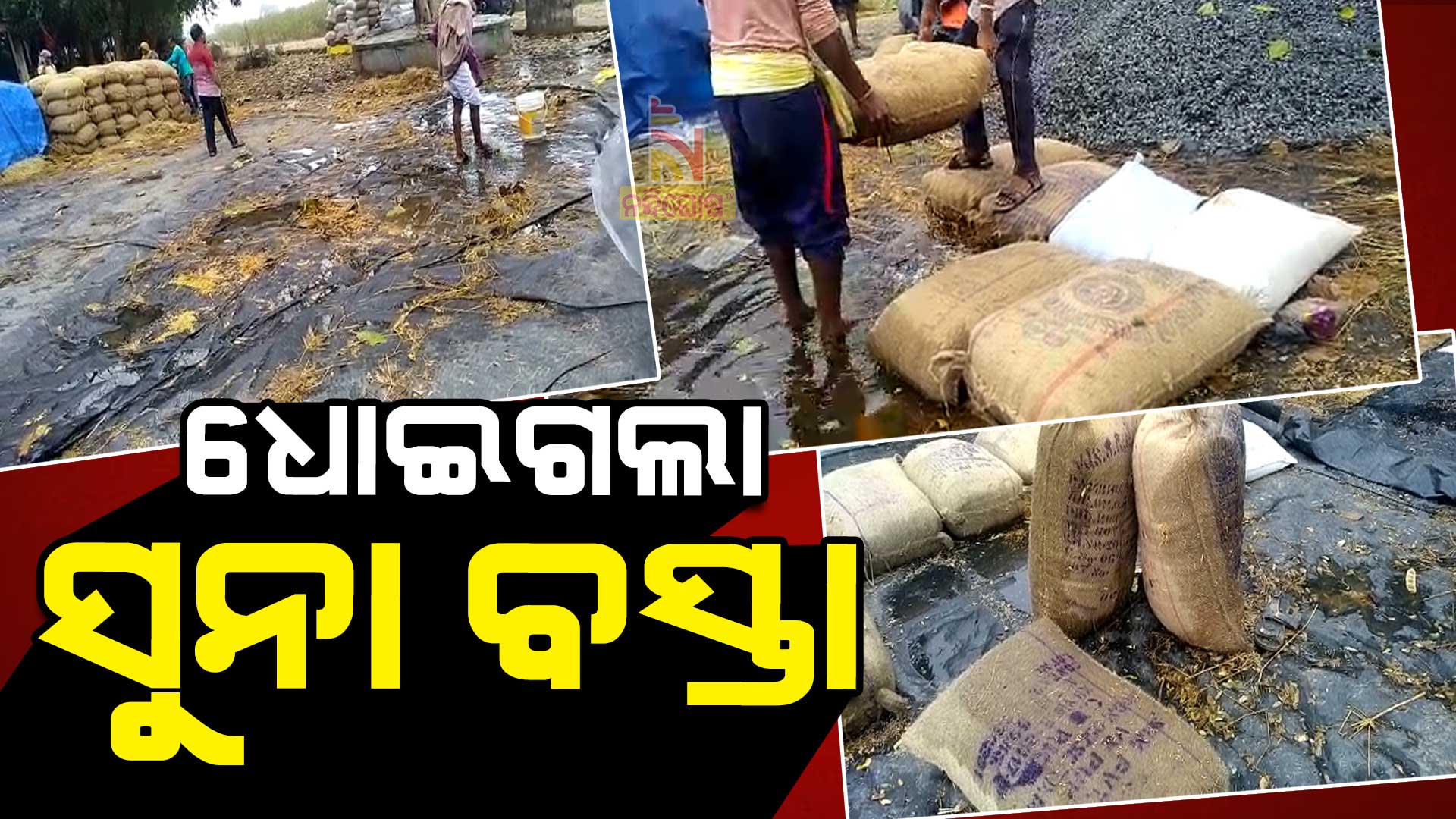 ବର୍ଷା ପାଣିରେ ଧାନ ପୁରା ଓଦା ହୋଇଯାଇଛି । ଆଉ ଯାହା କିଛି ଧାନ ବଞ୍ଚିଯାଇଛି ସେଗୁଡିକୁ ଚାଷୀ ସାଉଣ୍ଟିବାରେ ଲାଗିପଡ଼ିଛି ।