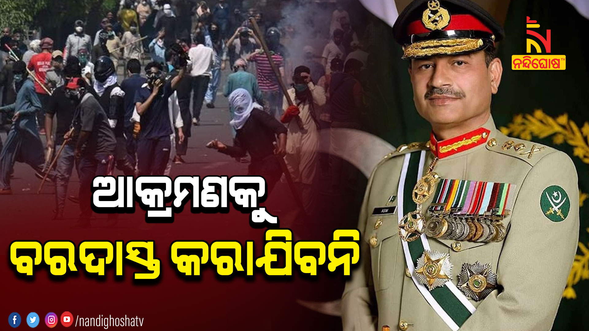 ଲାହୋର: ଇମ୍ରାନଙ୍କ ସମର୍ଥକଙ୍କୁ ପାକିସ୍ତାନ ଆର୍ମି ଚିଫଙ୍କ ଚରମ ବାଣୀ। ମେ ୯ରେ ଯୋଜନାବଦ୍ଧ ଭାବେ ସାରା ଦେଶରେ ହୋଇଥିବା ହିଂସା ଓ ସୈନ୍ୟ ପ୍ରତିଷ୍ଠାନ ଉପରେ ଆକ୍ରମଣକୁ ବରଦାସ୍ତ କରାଯିବନି ବୋଲି କହିଛନ୍ତି ପାକିସ୍ତାନ ଆର୍ମି ଚିଫ୍ ଅସିମ ମୁନୀର।