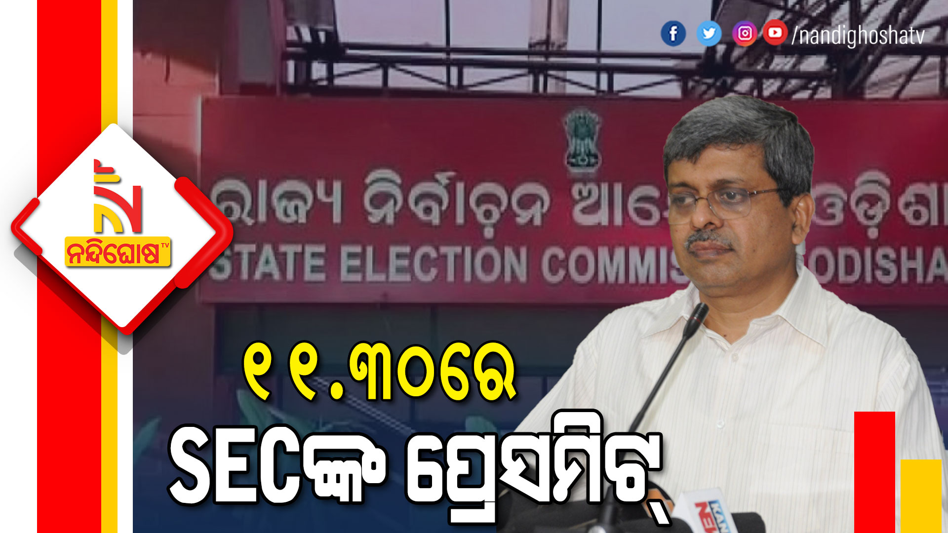 ଭୁବନେଶ୍ୱର: ତ୍ରିସ୍ତରୀୟ ପଞ୍ଚାୟତ ନିର୍ବାଚନ ନେଇ ୧୧.୩୦ରେ ଘୋଷଣା ହୋଇପାରେ ନିର୍ବାଚନୀ ତାରିଖ। ରାଜ୍ୟ ନିର୍ବାଚନ ଆୟୋଗ ଡାକିଛନ୍ତି ପ୍ରେସମିଟ୍ । ପୂର୍ବାହ୍ନ ସାଢ଼େ ୧୧ଟାରେ ଗୀତଗୋବିନ୍ଦ ସଦନରେ ଅନୁଷ୍ଠିତ ସାମ୍ବାଦିକ ସମ୍ମିଳନୀରେ ପଞ୍ଚାୟତ ନିର୍ବାଚନ ତାରିଖ ଘୋଷଣା କରିପାରନ୍ତି ନିର୍ବାଚନ କମିଶନ ।