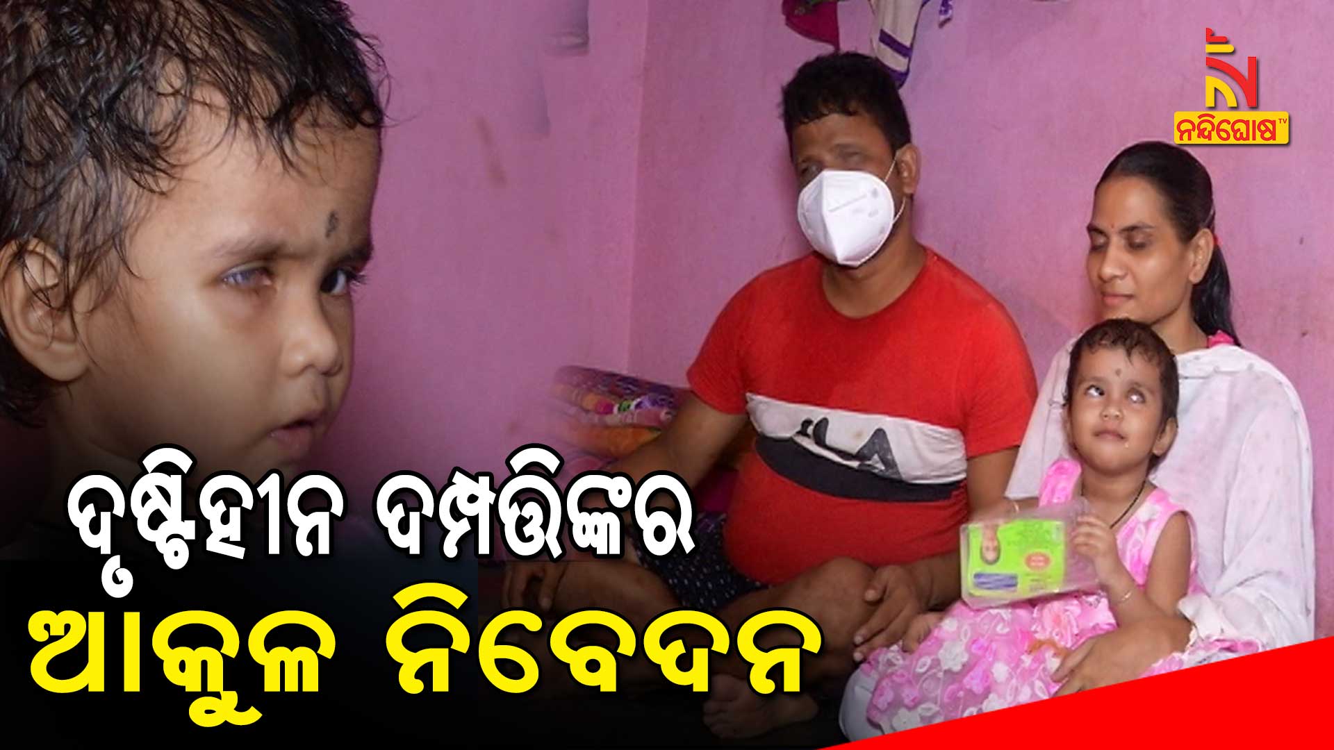 ପାଟି ଖୋଲୁନି କି ଯନ୍ତ୍ରଣାସିକ୍ତ ଶରୀର ବୋଲମାନୁନି। ଖନି ମରା ପାଟିରେ ଦୃଷ୍ଟିହୀନ ମାଆଙ୍କୁ କହୁଛି ଯନ୍ତ୍ରଣା କଥା। ଦୃଷ୍ଟିହୀନ ଦମ୍ପତ୍ତି ଅଶୋକ ନାୟକ ଓ ସୁମିତ୍ରା ନାୟକଙ୍କ କୋଳରେ ନୂଆ ସମ୍ଭାବନା ସାଜି ଆସିଥିଲା ପୂଜାର୍ଚ୍ଚନା ନାୟକ। ଝିଅ ଆଖିରେ ଦୁନିଆଁ ଦେଖିବେ ବୋଲି ଖୁସିରେ ଆତ୍ମହରା ହୋଇପଡିଥିଲେ ବାପା ମାଆ। ହେଲେ ୭ ମାସ ପରେ ରଙ୍ଗୀନ ଦୁନିଆର ସ୍ୱପ୍ନ ମିଳେଇଗଲା ଅନ୍ଧାରୀ ରାଇଜରେ। ମୁଣ୍ଡରେ ମାଡ ହେବାରୁ ଗୋଟିଏ ଆଖି କ୍ୟାନସର ହୋଇଗଲା। ମାଗିଯାଚି ଝିଅର ଗୋଟିଏ ଆଖି ଚିକିତ୍ସା କରାଇଥିଲେ ମାଆା ବାପା । ହେଲେ ଦୁର୍ଭାଗ୍ୟବଶତଃ ଅନ୍ୟ ଆଖିରୁ ଏବେ କମିକମି ଯାଉଛି ଦୃଷ୍ଟି ଶକ୍ତି।